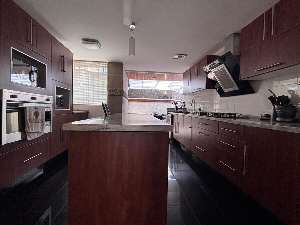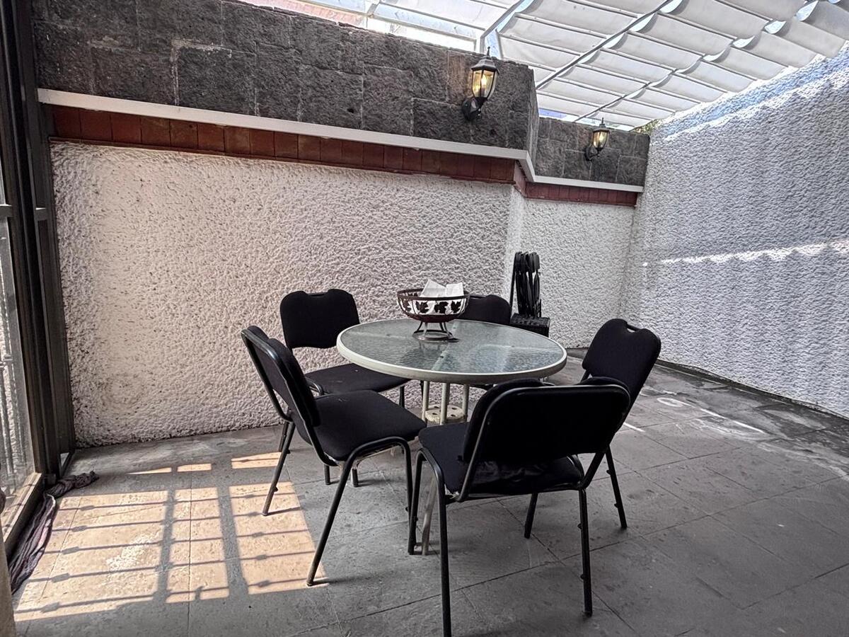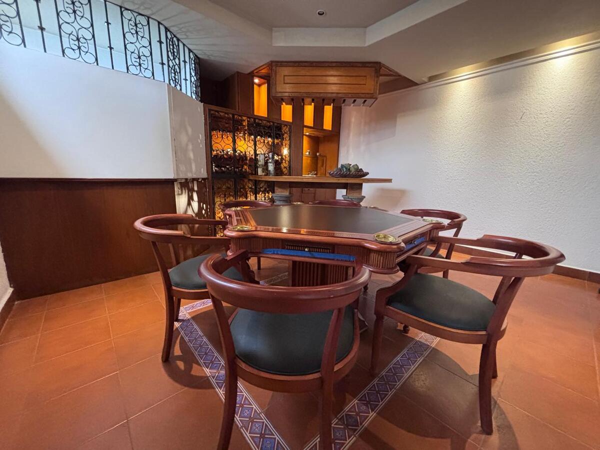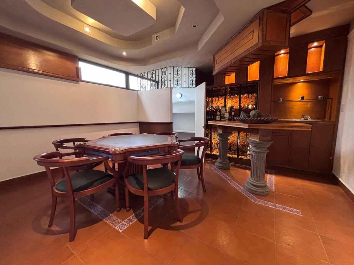 On the ground floor, there is a large game room with access to a terrace and the garden and a bar area; also another space that could be a gym or a hobby room. The garden is flat with 2 terraces and a barbecue. Laundry and service rooms and 6 parking spaces.Casa en venta en fraccionamiento con mucha seguridad. Con facilidad acceso a la supervia y a Santa Fe.