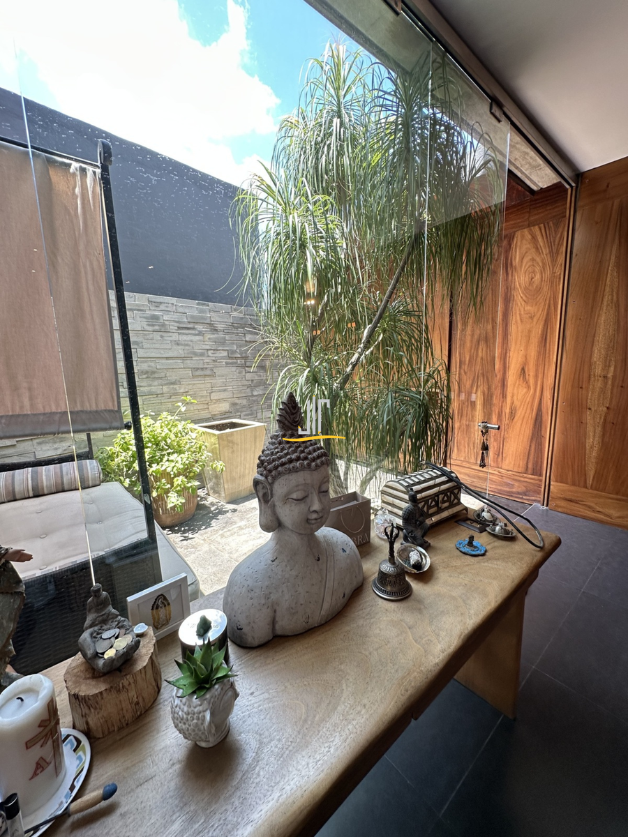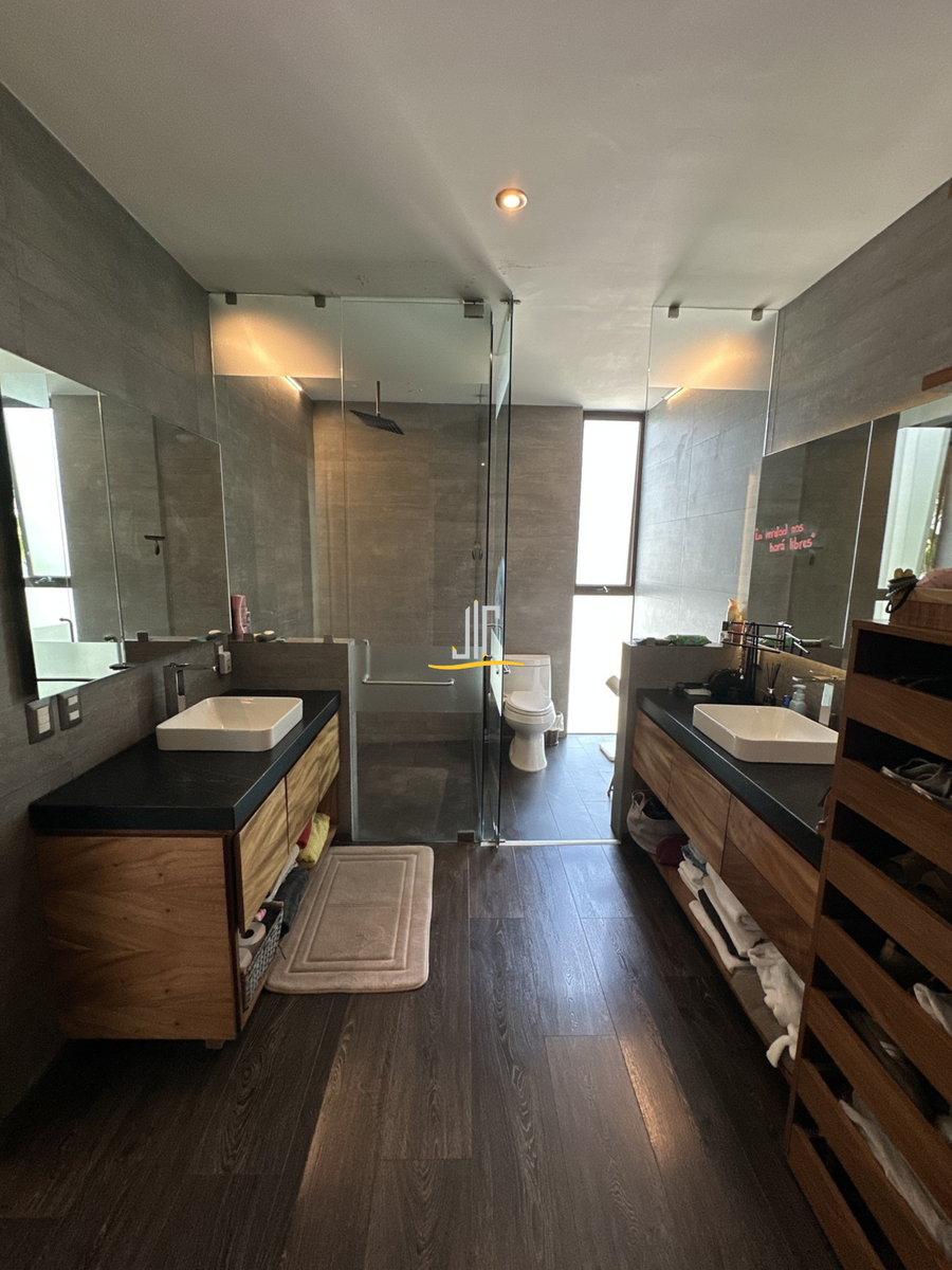 La recámara principal destaca por su volumetría, iluminación difusa, un vestidor tipo walk-in, baño spa y una terraza al aire libre con privacidad total.