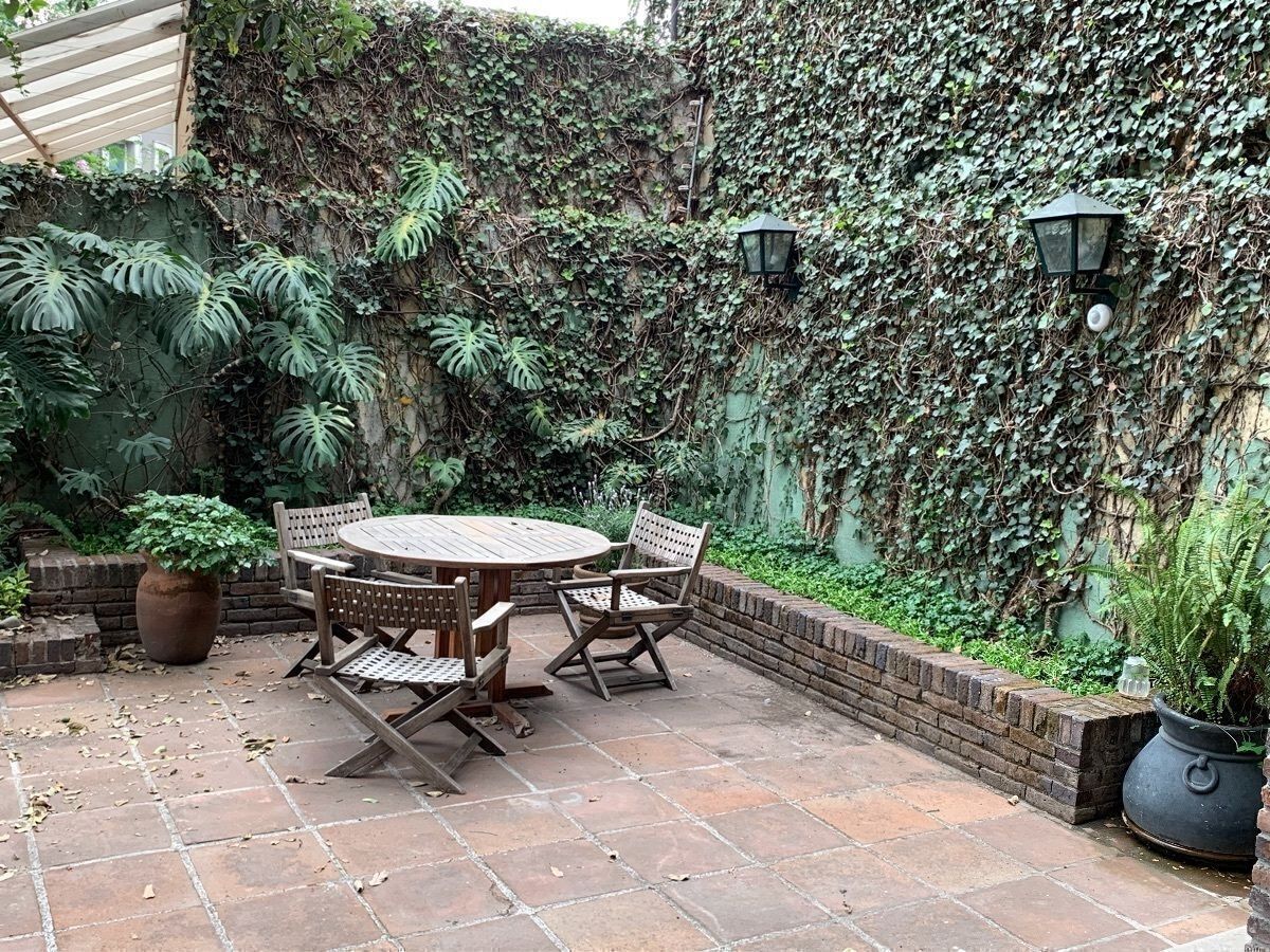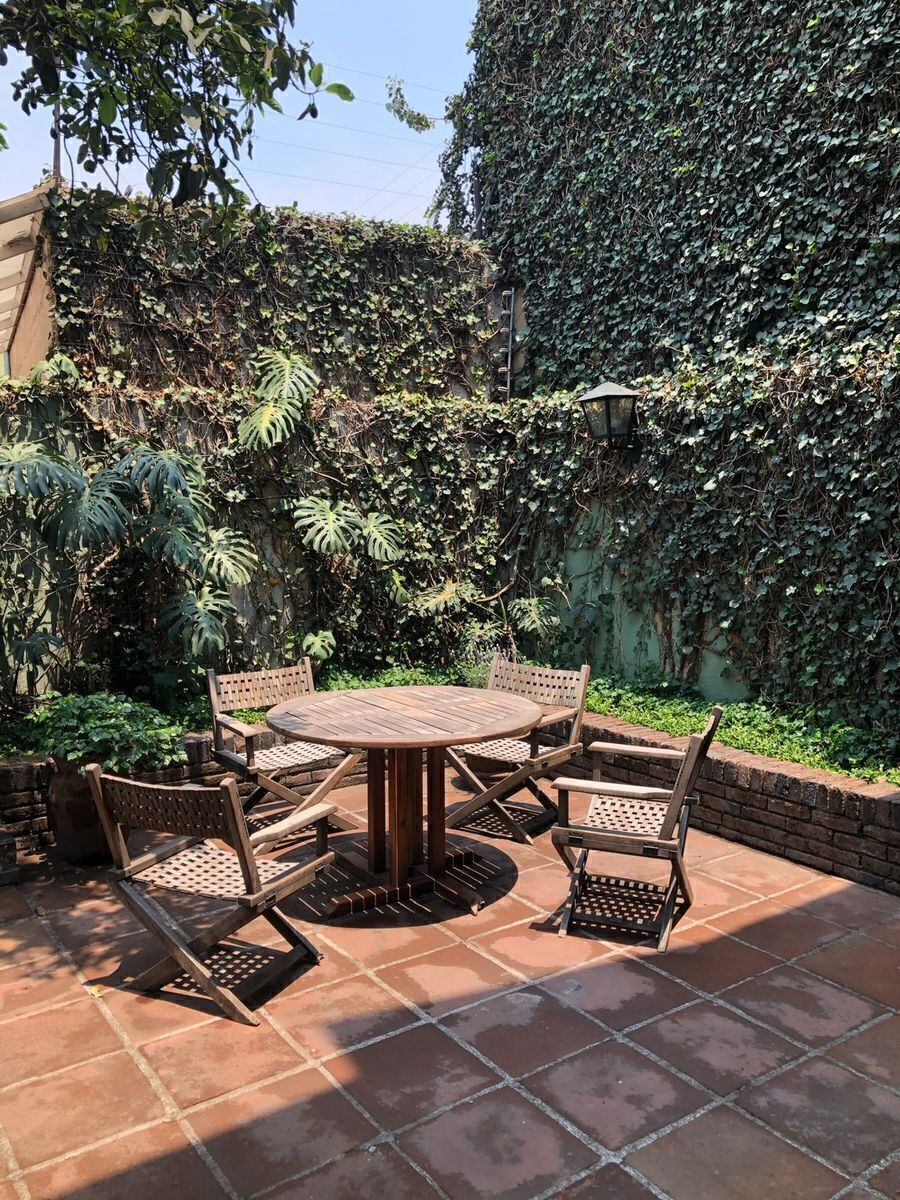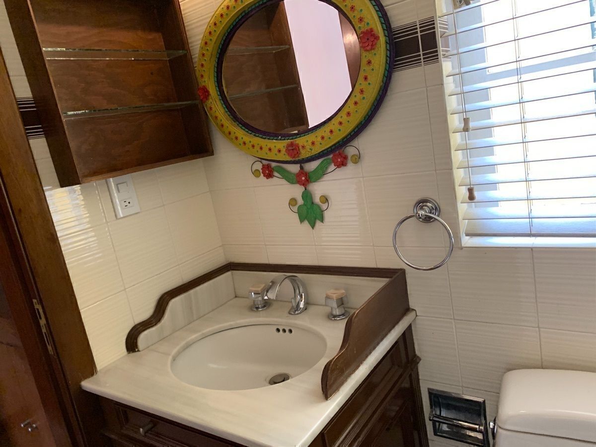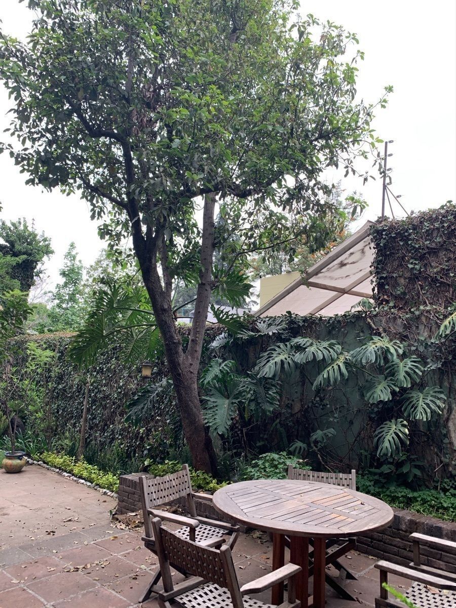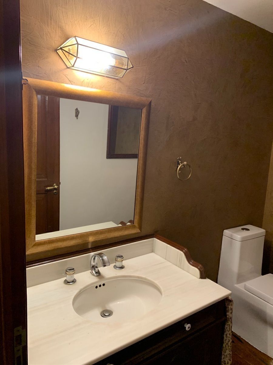 This impeccable residence welcomes you with beautiful wooden floors and high mahogany wood ceilings in the living room with a brick fireplace and large windows that provide incredible brightness.