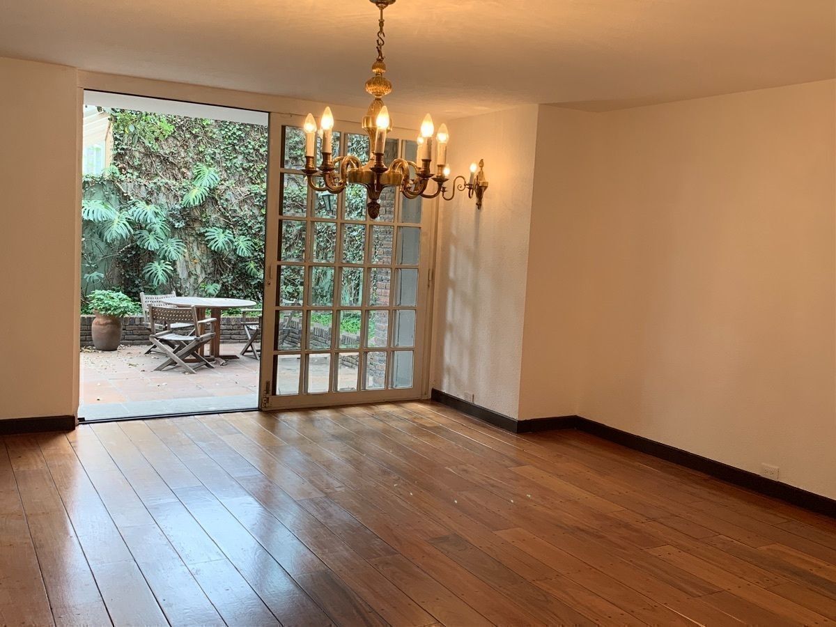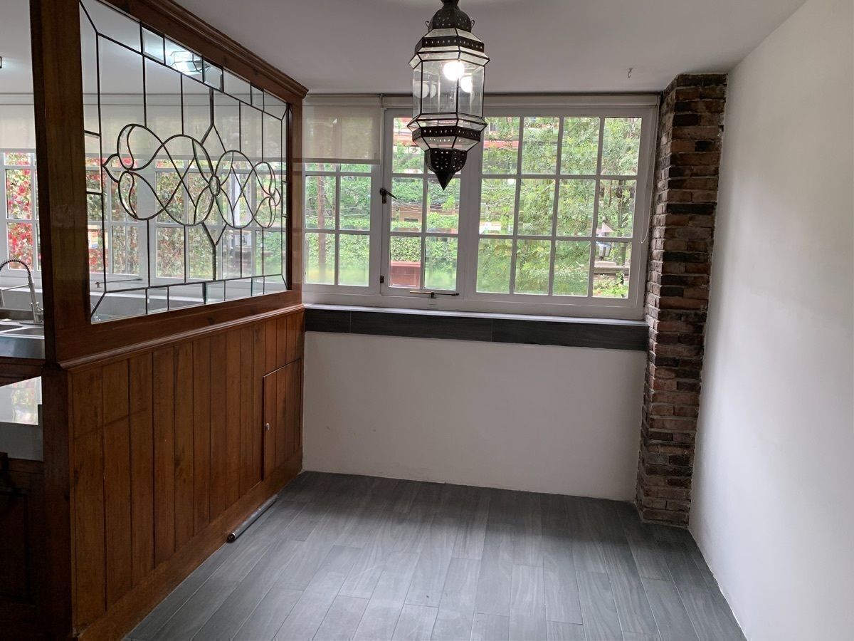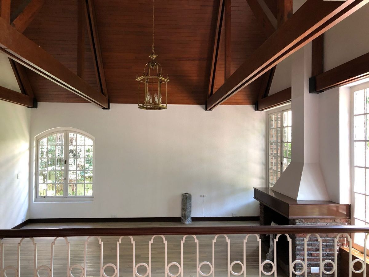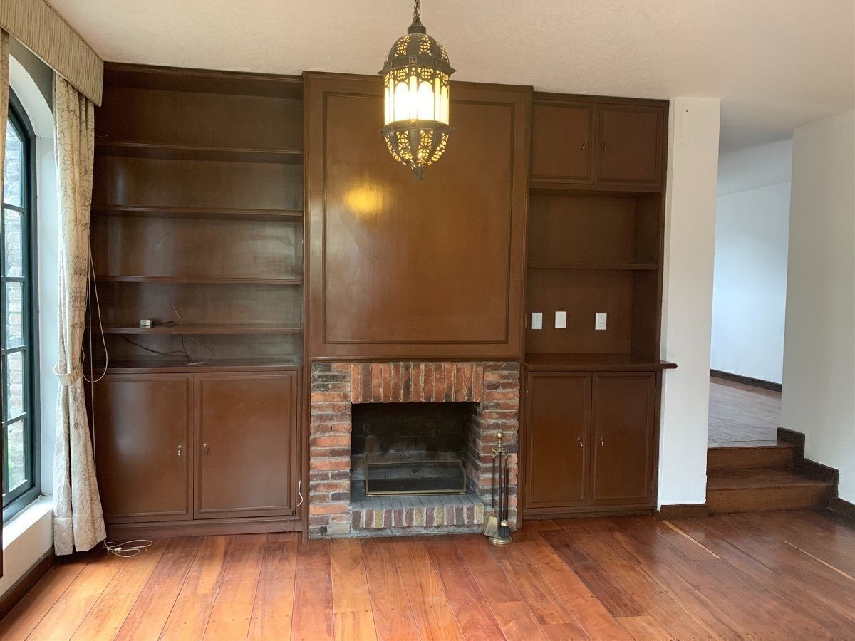 Esta impecable residencia te recibe con preciosos pisos de madera y altos techos de madera de caoba en la sala con chimenea de ladrillo y ventanales que le dan una increíble luminosidad.