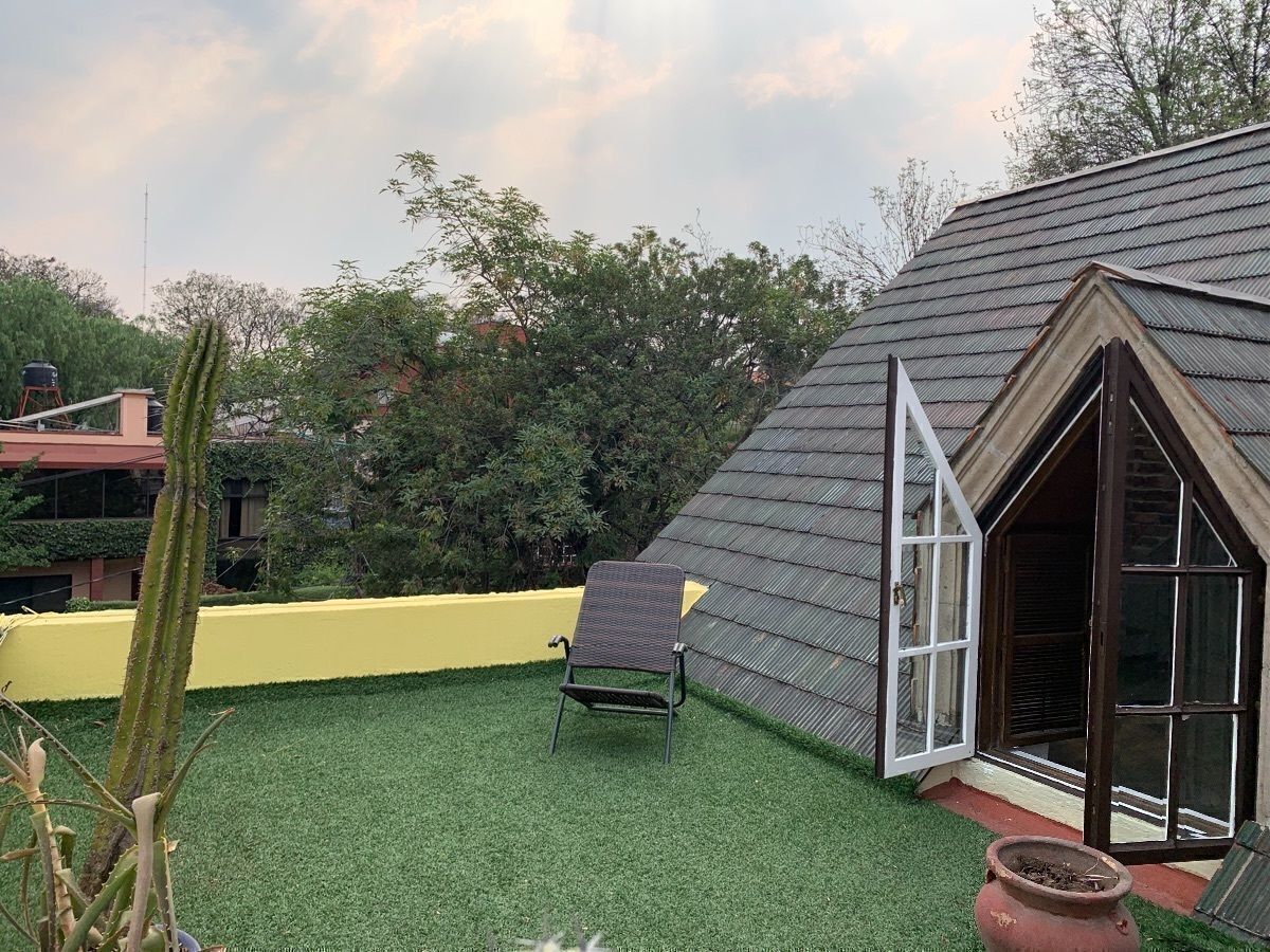 La tercera recámara tiene baño inegrado con tina, amplios closets y unas escaleras que te llevan a un gran tapanco con closet y salida a su precioso roof garden.