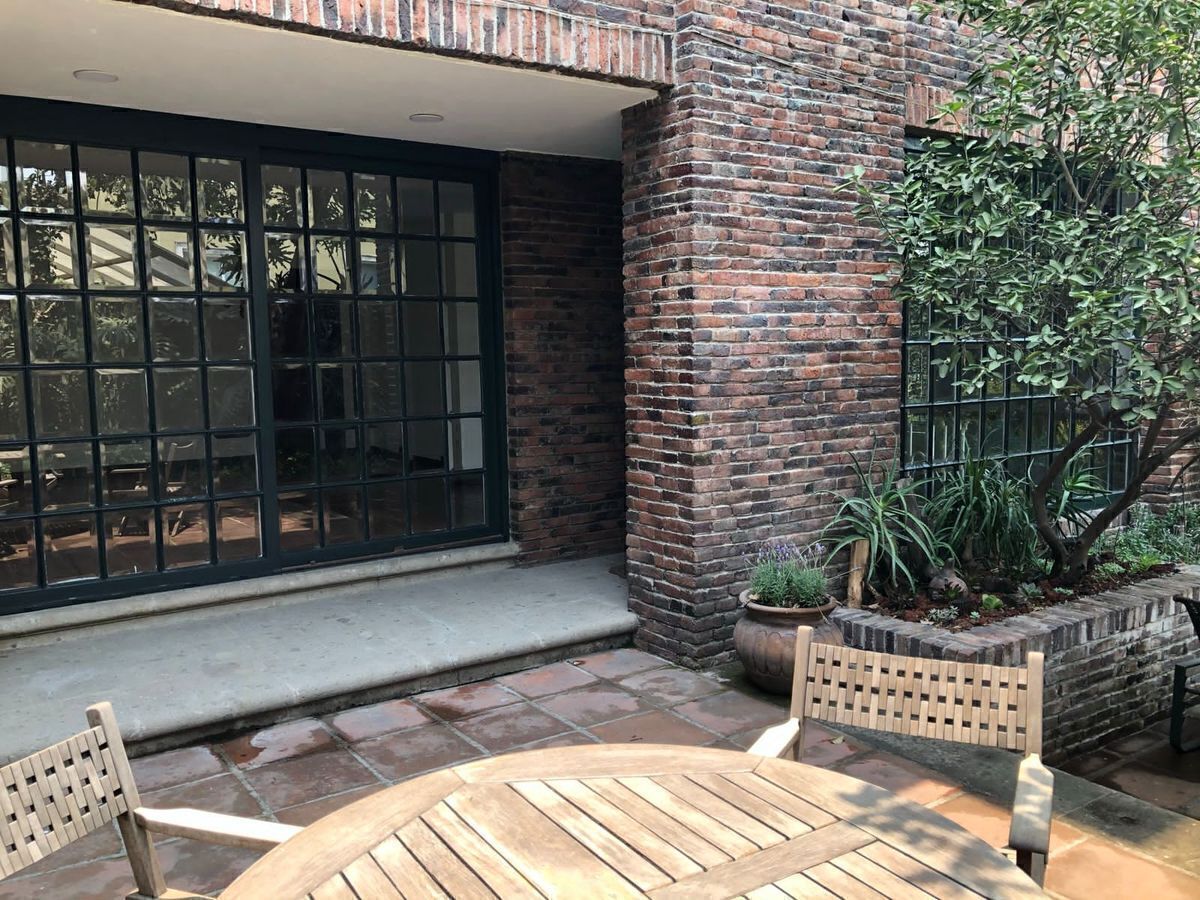 Its spacious kitchen is equipped with appliances including a dishwasher. The wine cellar/bar leads to its beautiful dining room with floor-to-ceiling windows that invite you to the spectacular terrace and garden with fruit trees.