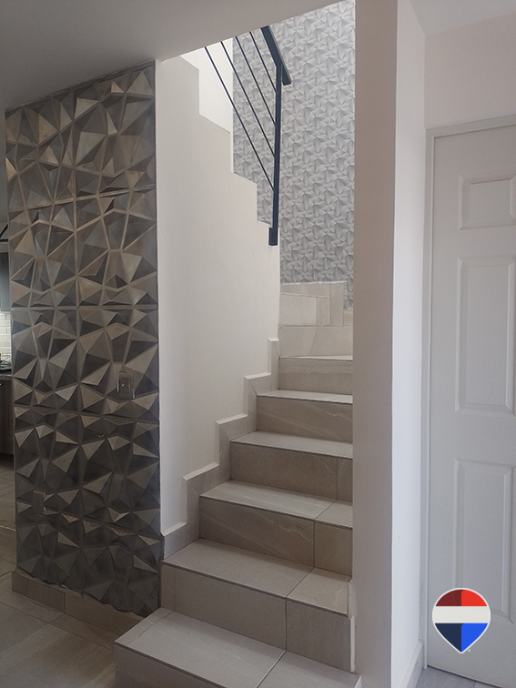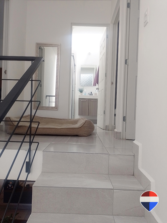 En planta alta: 3 recámaras, la principal con vestidor y baño completo y un baño completo que da servicio a las otras dos recámaras.
