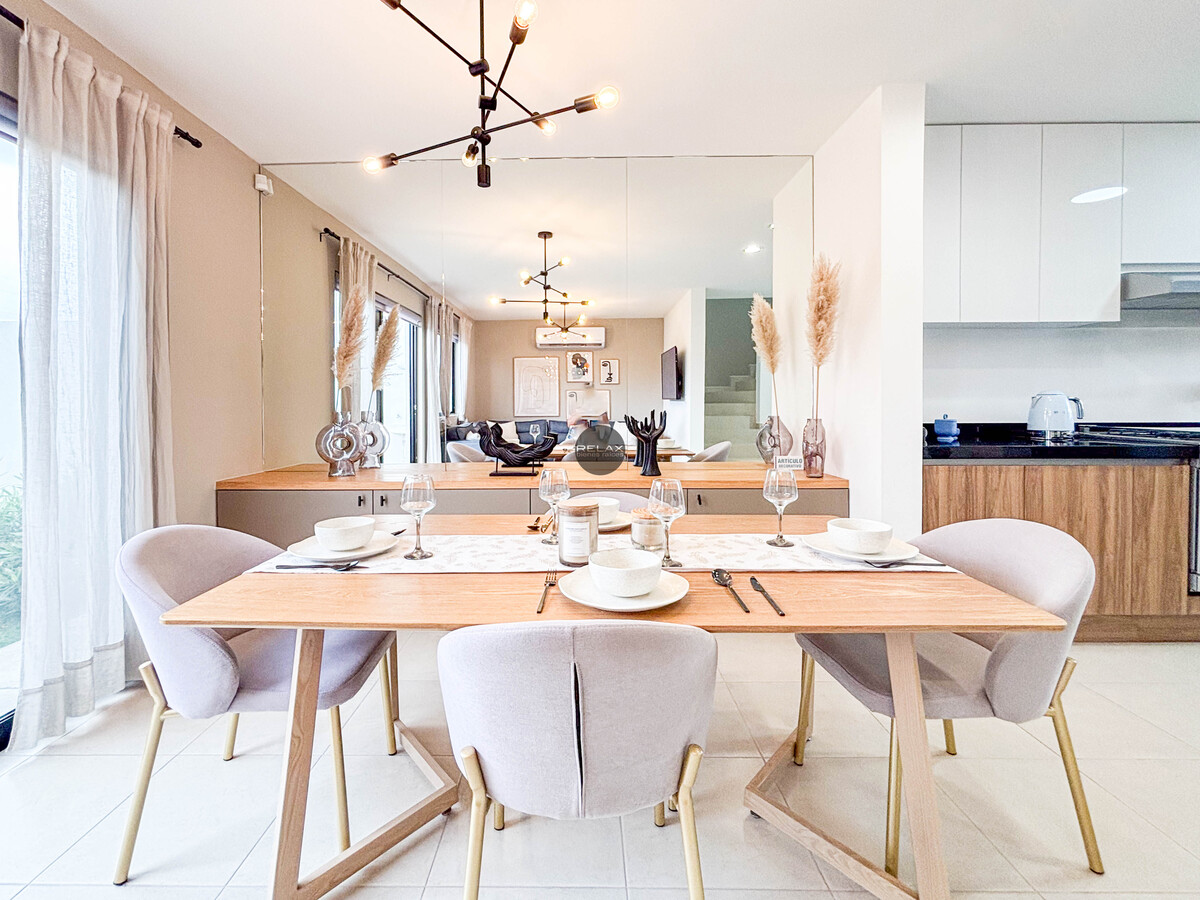 En planta baja, encontrarás una sala y comedor integrados que se conectan de forma natural con la cocina, medio baño para visitas y cochera para 2 autos.