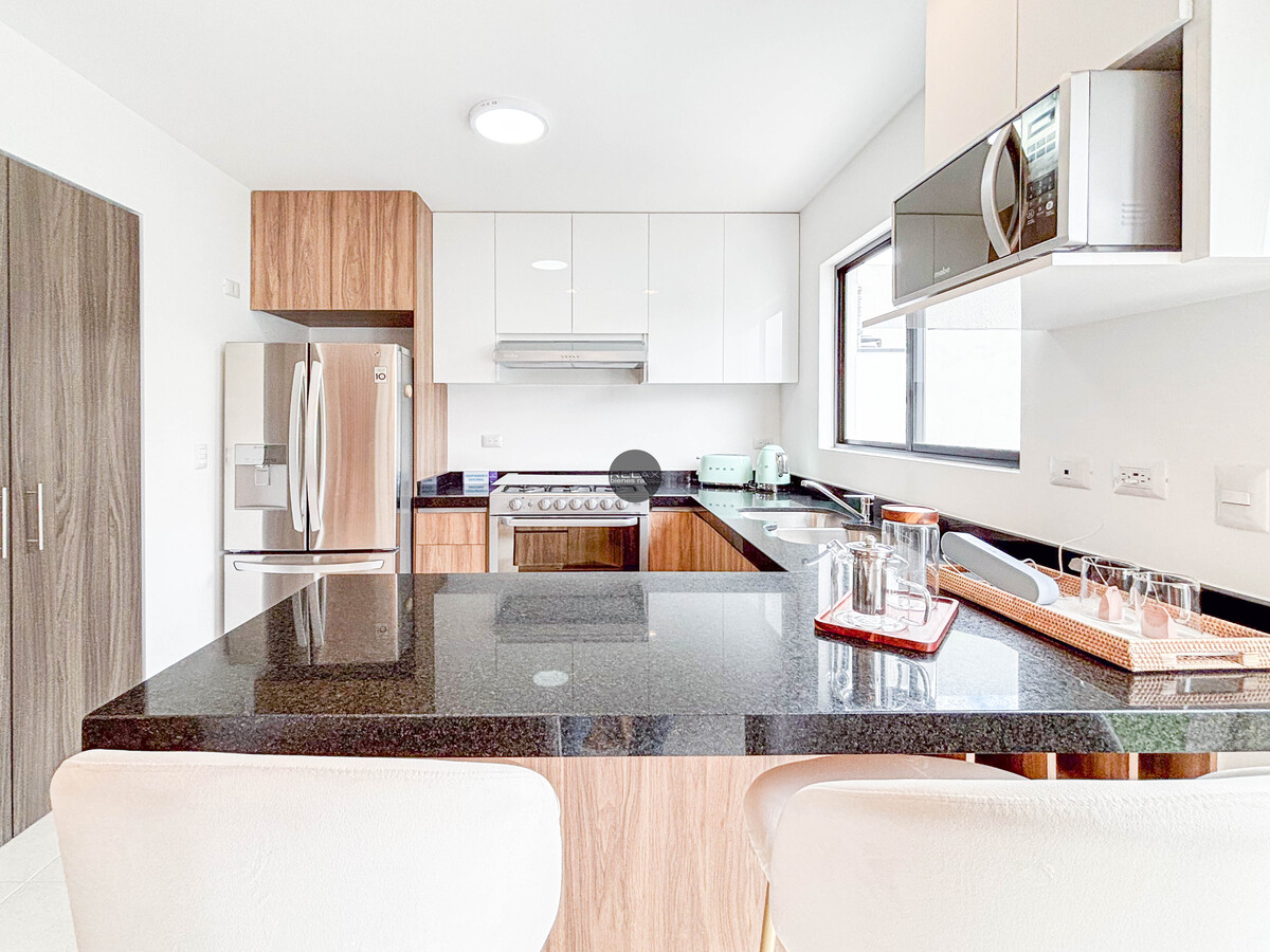 Cocina moderna con barra, ideal para compartir en familia