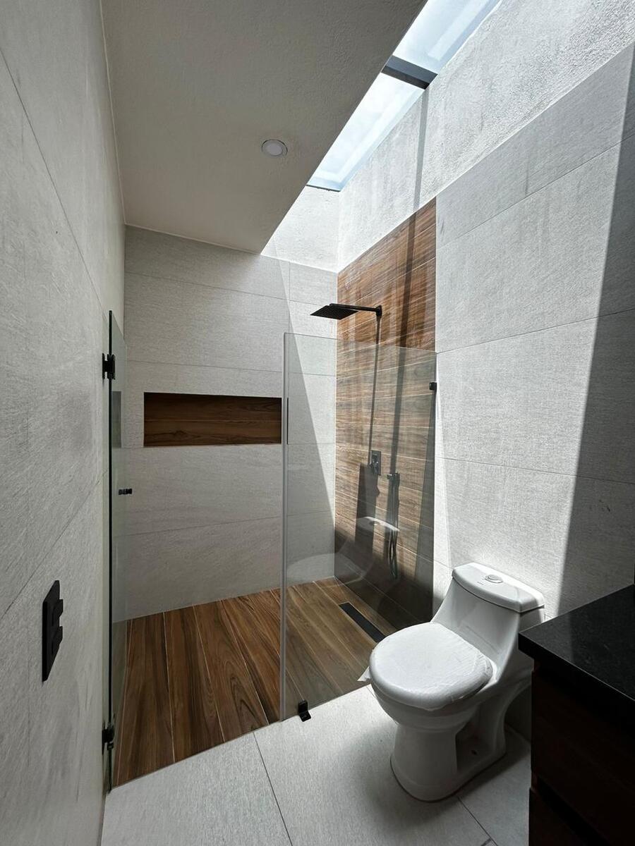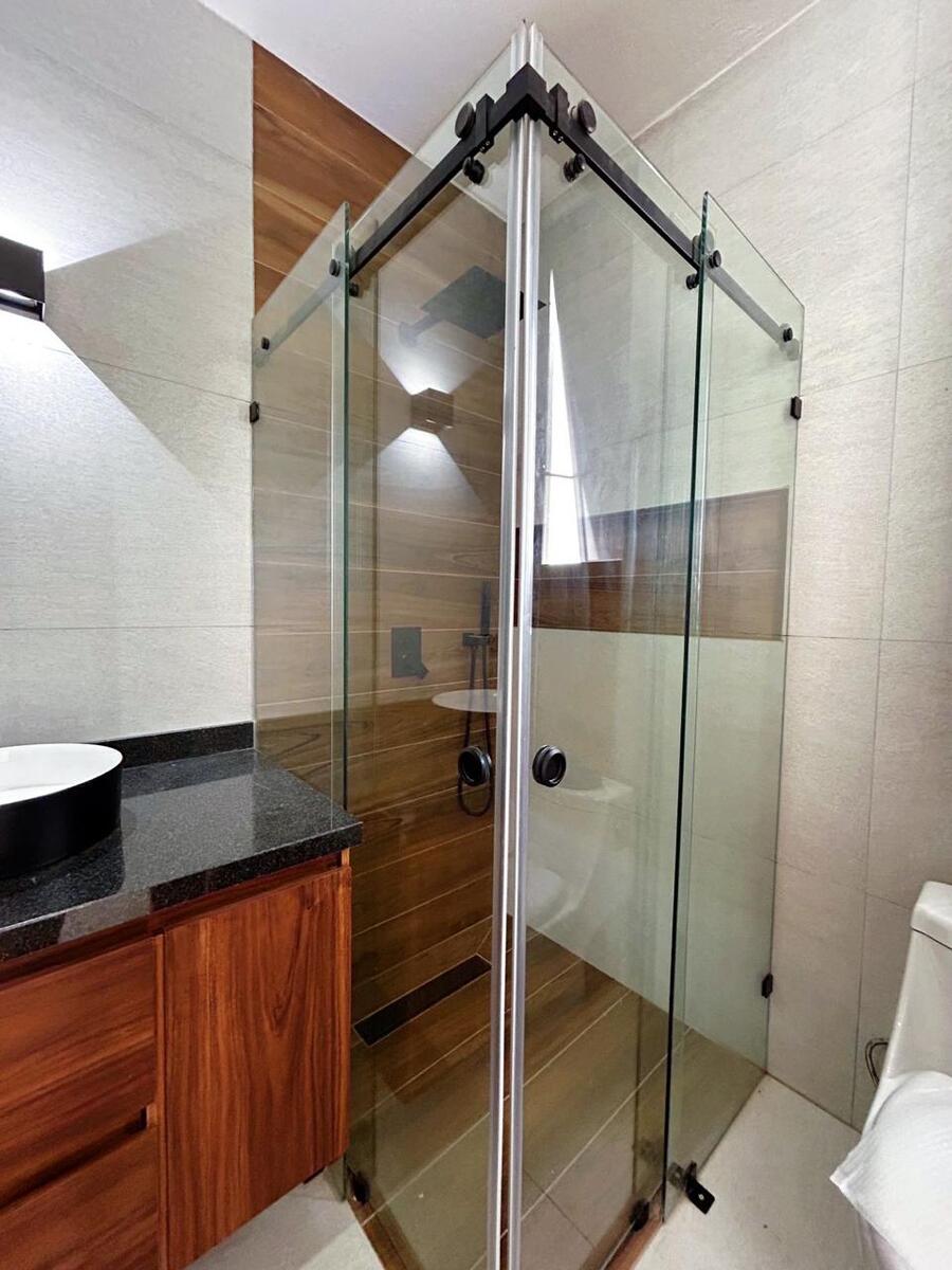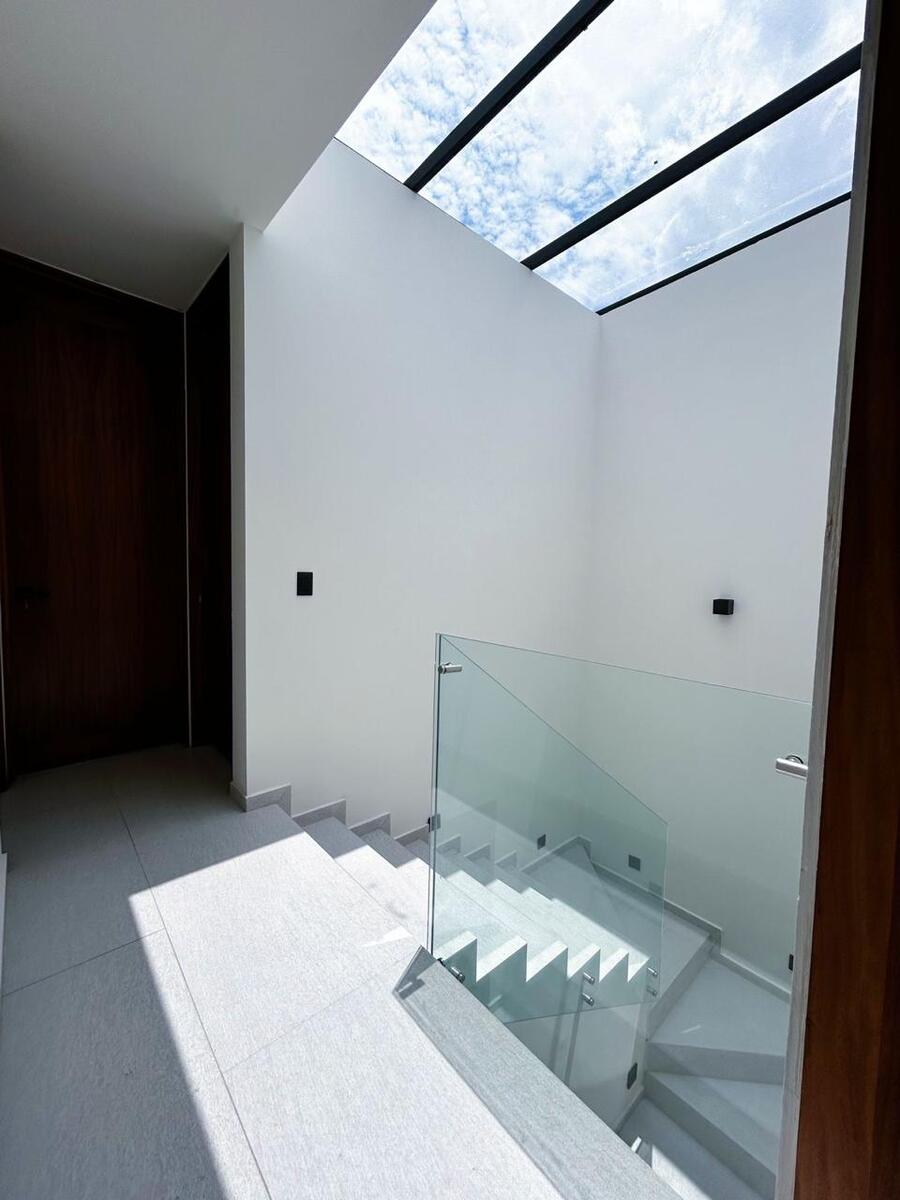 Cuenta con acabados de calidad: portón eléctrico, puerta principal de madera, regaderas de cristal, pisos de porcelanato 60x120, ventanales con película térmica y de privacidad, mosquiteros y preparación para A/A en recámaras.