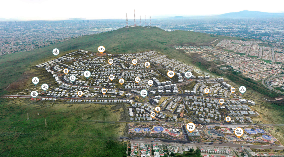 El condominio ofrece áreas comunes como parque central, multicanchas, gimnasio al aire libre, parque zen, de mascotas, circuito de ciclismo, zona comercial, y gimnasio crossfit. Cercano a supermercados, restaurantes, hospitales, universidades (ITESO, UVM, TecMilenio), bancos y con fácil acceso a vialidades como Mi Macro Periférico y Tren Ligero Línea 1.