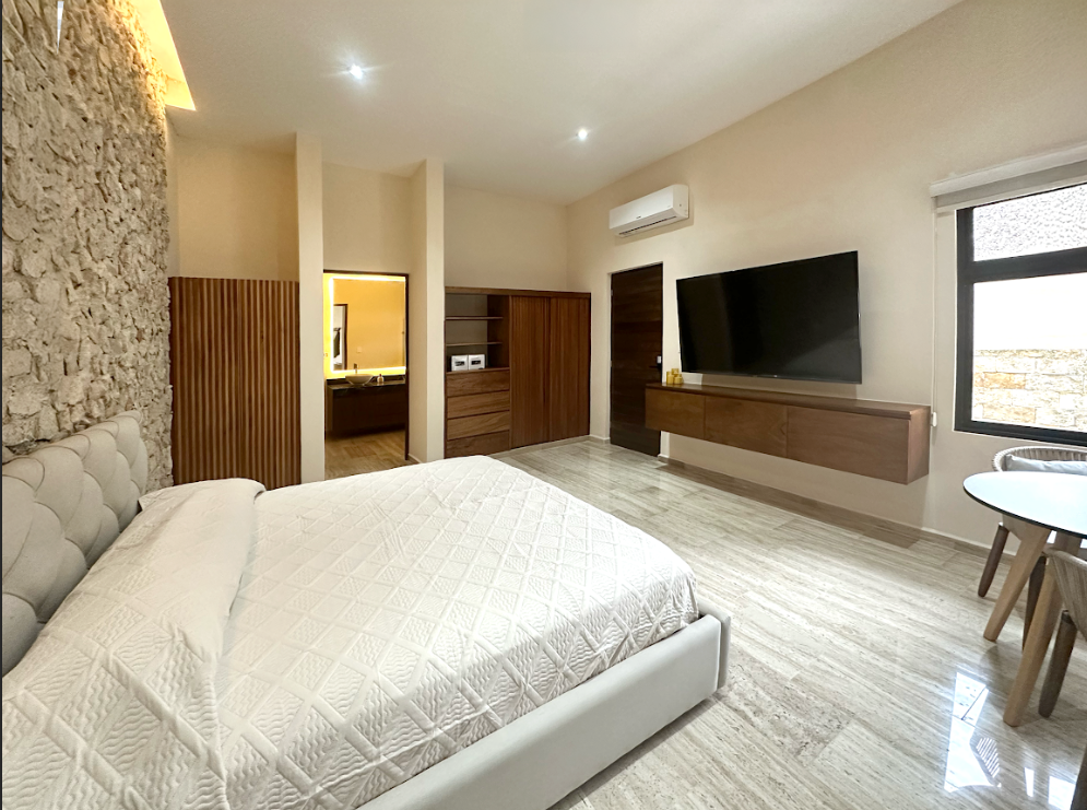 • 3 recamaras en planta baja cada uno con closets de madera de cedro y baño