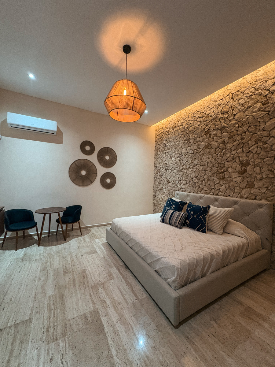 • 3 recamaras en planta baja cada uno con closets de madera de cedro y baño