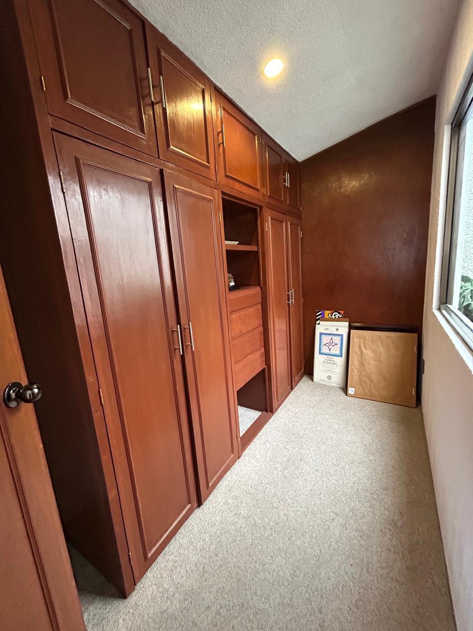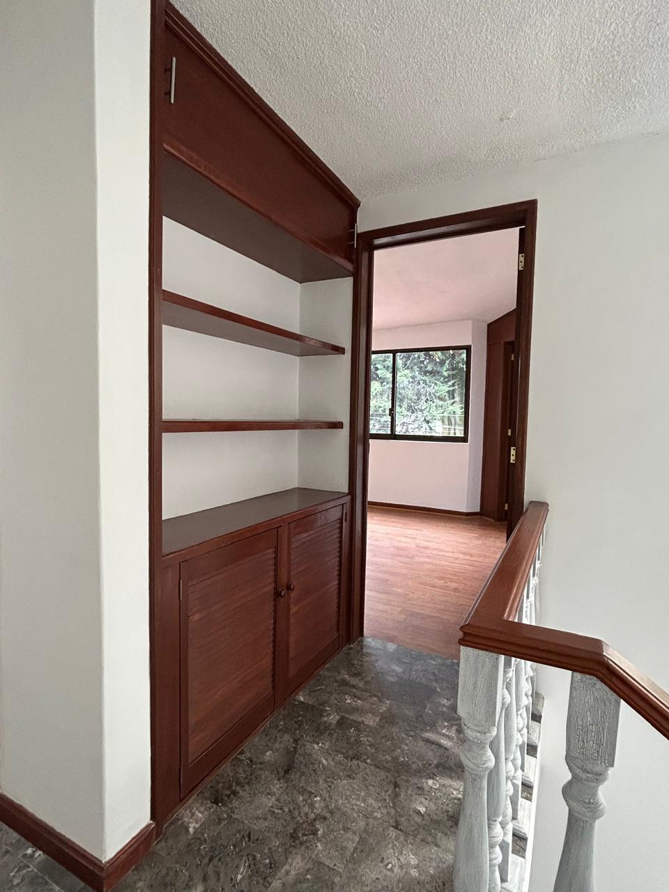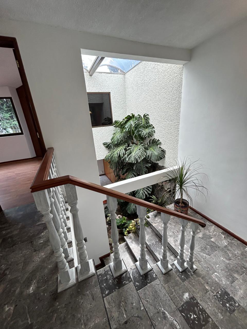 Residence with spacious areas and in very good condition and maintenance. It has a garage for six covered cars. Basement area ideal for a game room, bar, or hobby workspace. Large garden with fruit trees. On the ground floor, hall, internal garden area with double height next to the stairs, living room, dining room, kitchen with breakfast area and large pantry, service room with full bathroom and covered and ventilated laundry area, study with garden view. On the upper floor, four spacious bedrooms with dressing room and closet. The master bedroom has a dressing room and bathroom, a second bathroom for the secondary bedrooms. There is a secondary bedroom with a loft ideal for creating a personal study or play area. Gated community with beautiful green areas and playgrounds. It has private security and controlled access 24/7. Exit to Tecnológico Avenue and State of Mexico. The house is free of liens, has a deed, and is suitable for mortgage loans.