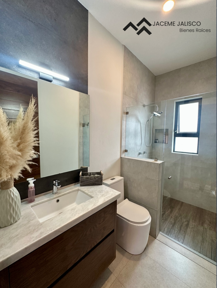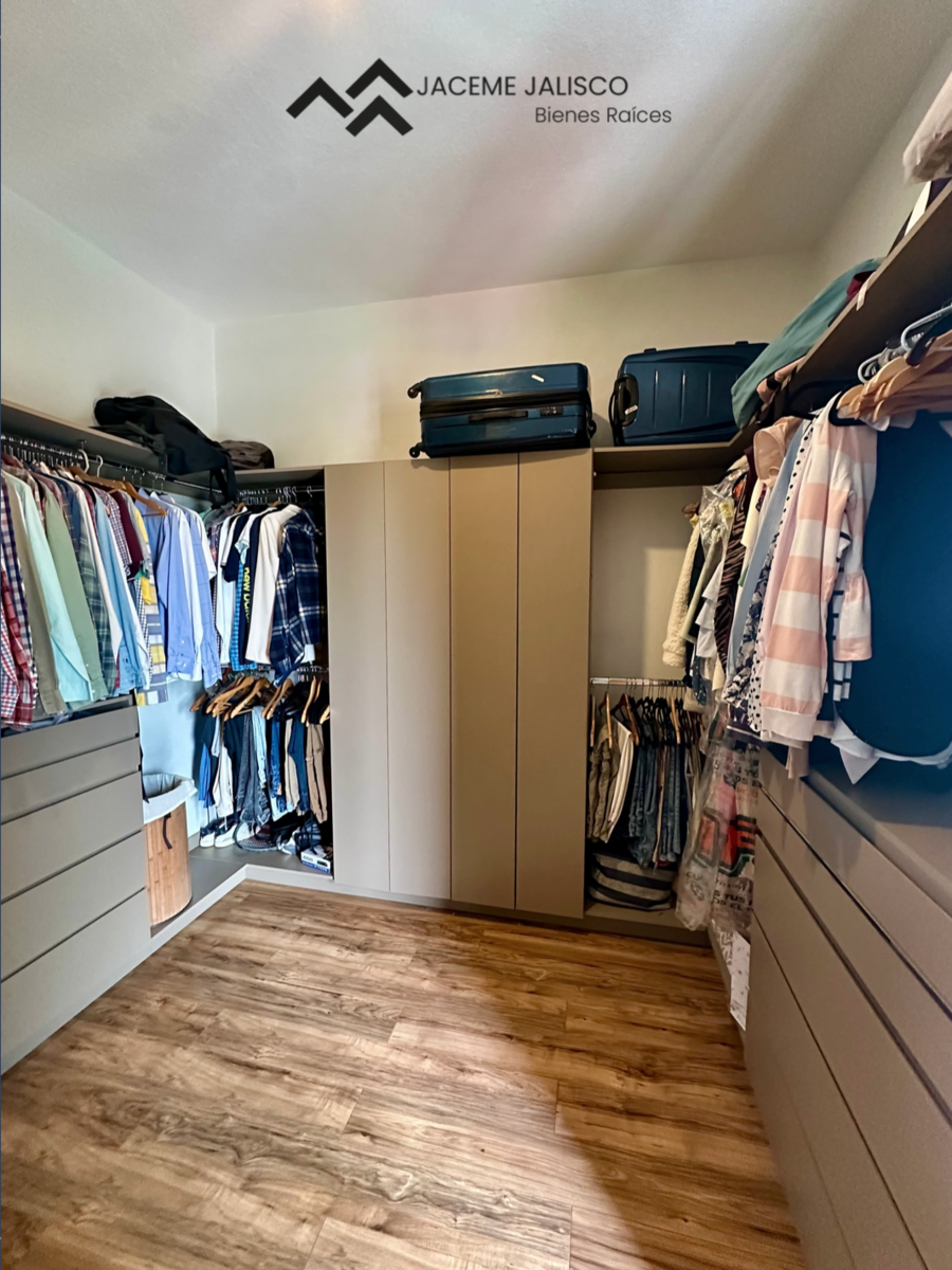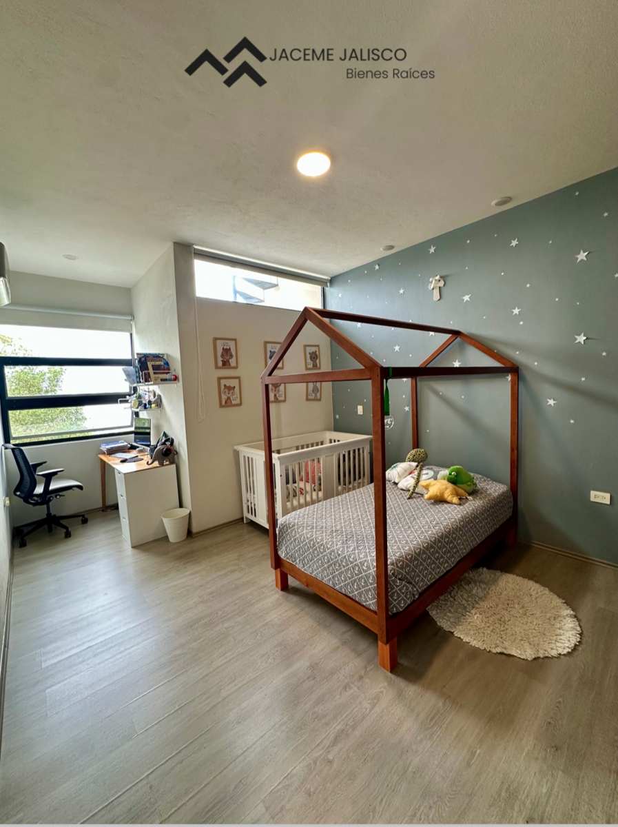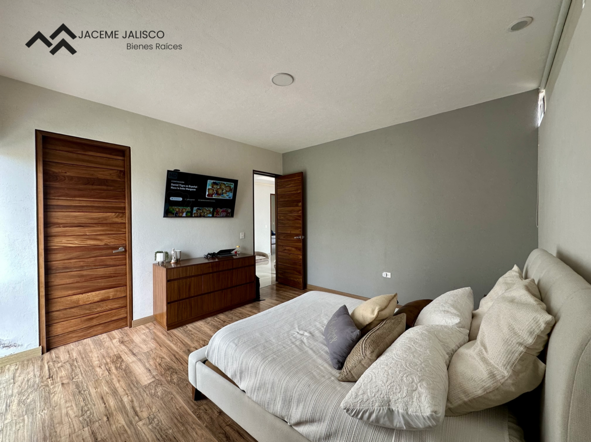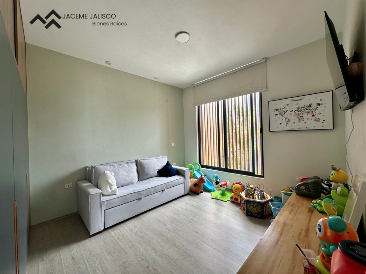 Planta alta: 3 recámaras, principal con vestidor y baño, secundarias con closet y baño compartido, estar de TV o área de estudio.