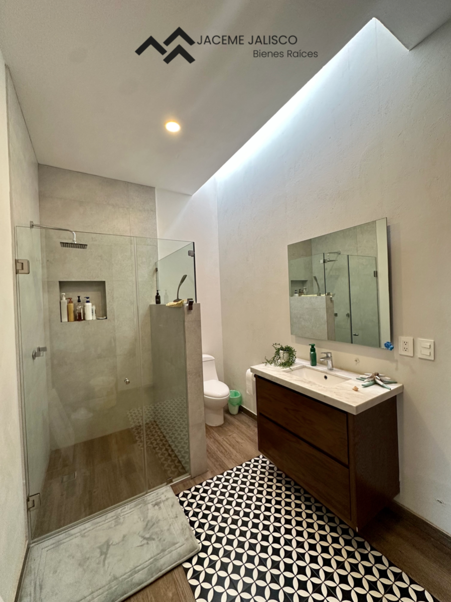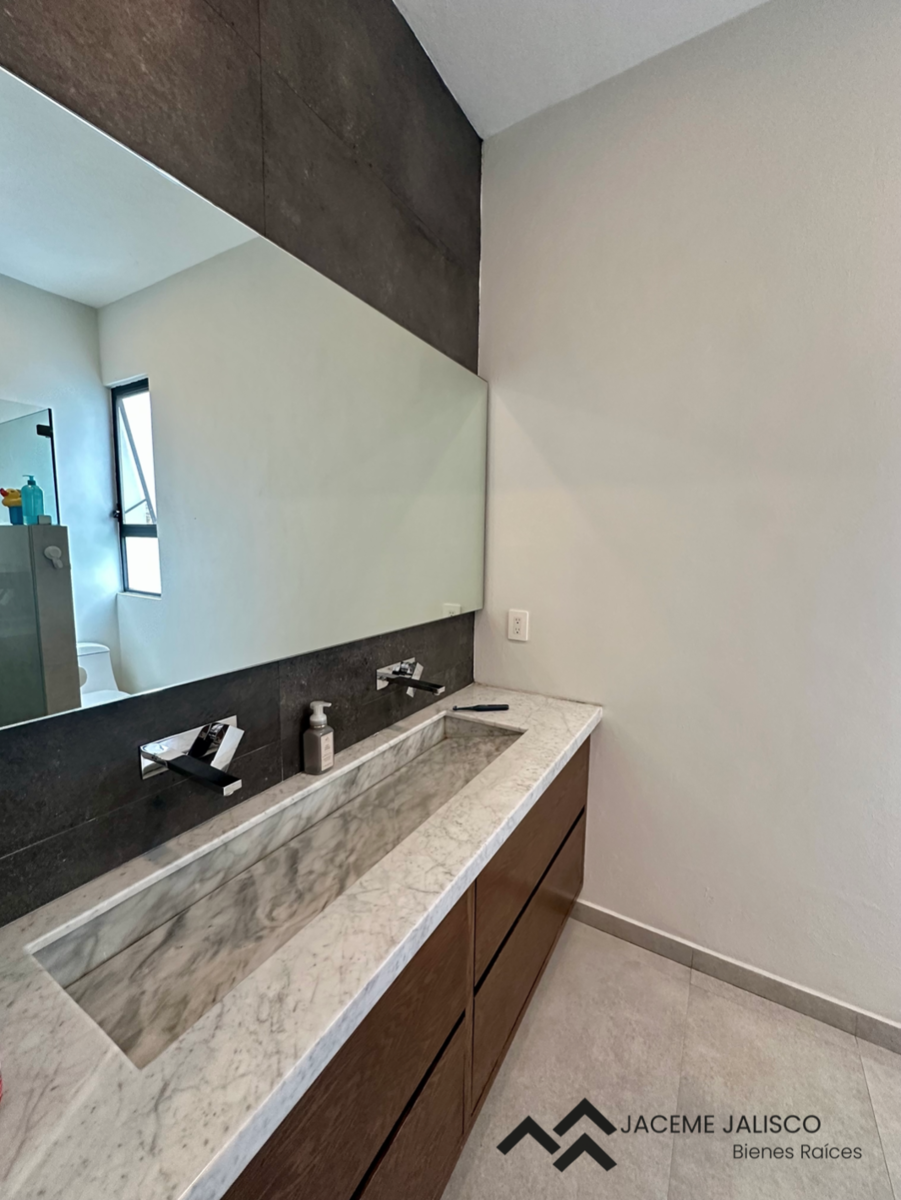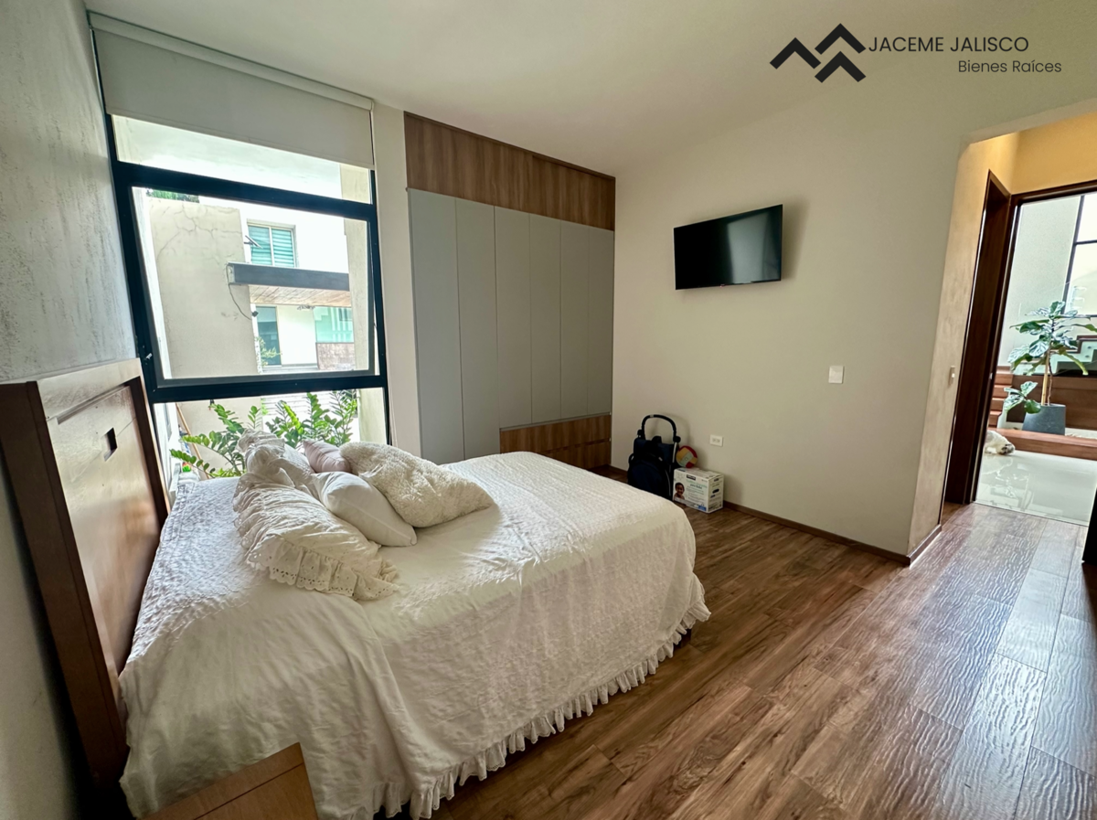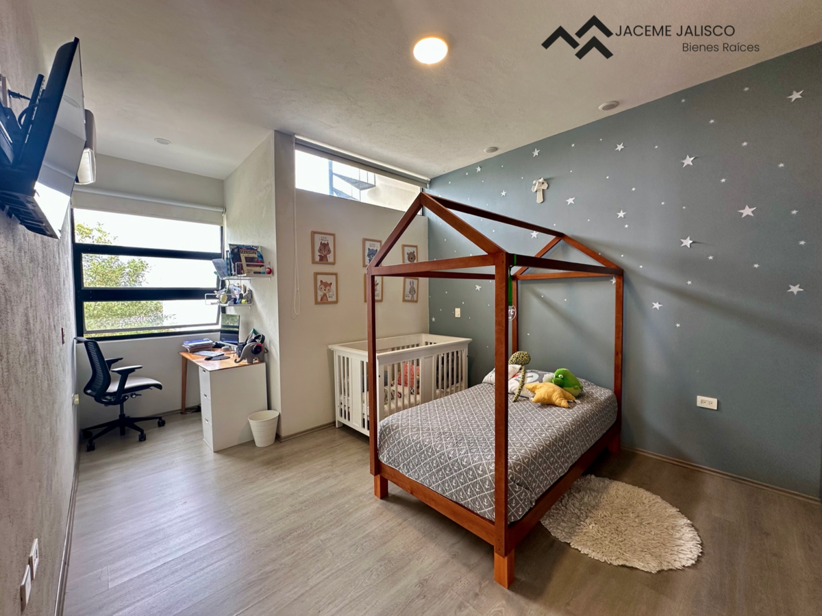 Planta alta: 3 recámaras, principal con vestidor y baño, secundarias con closet y baño compartido, estar de TV o área de estudio.