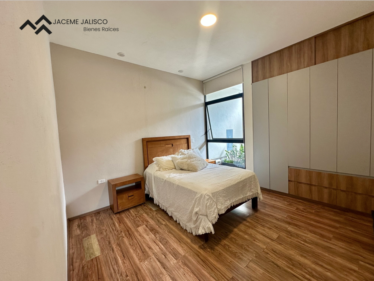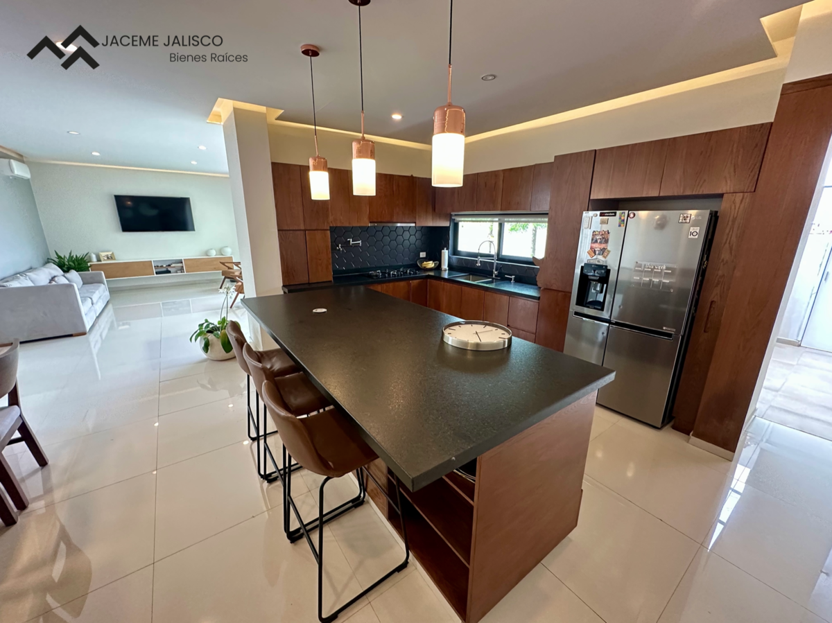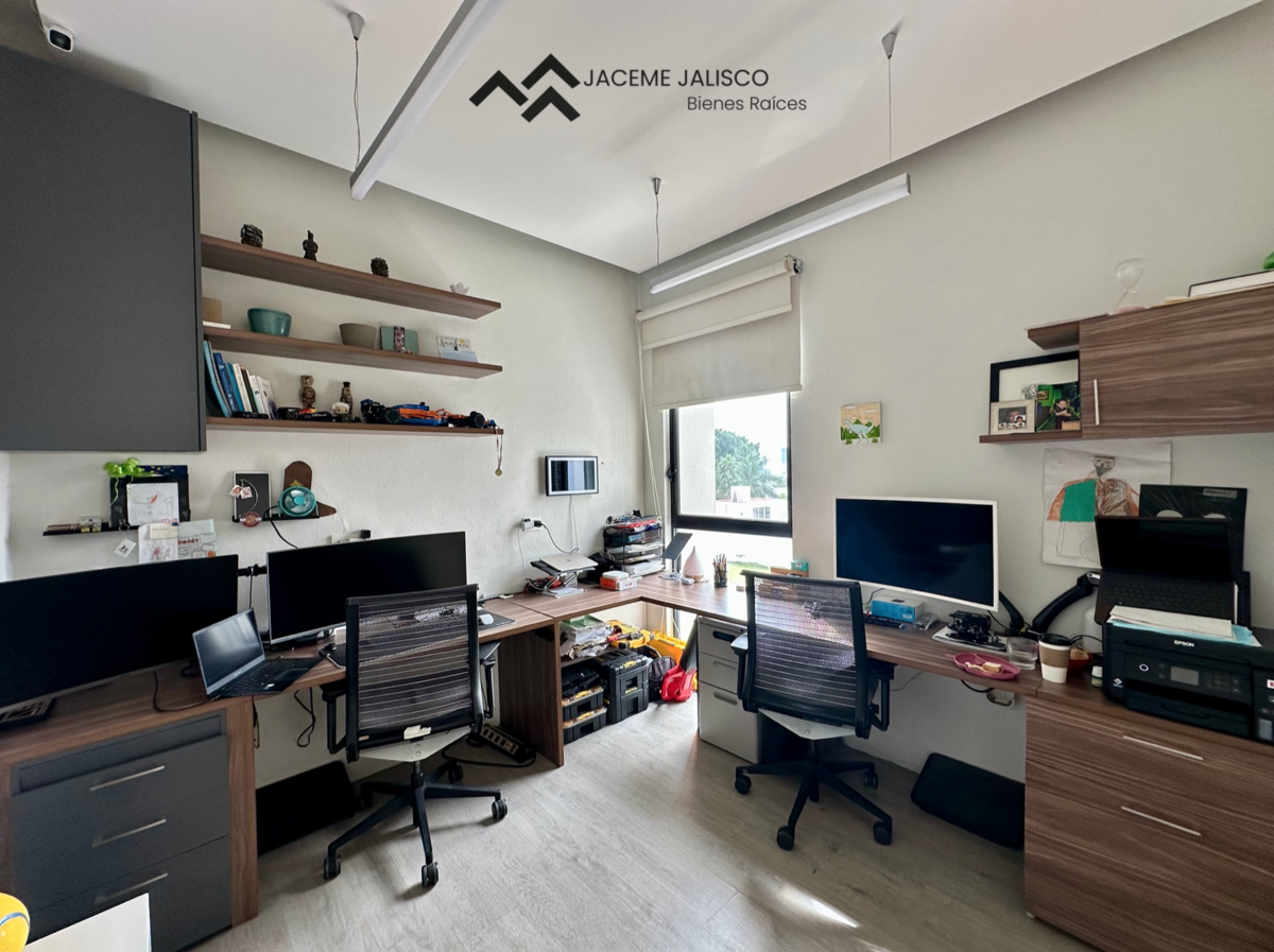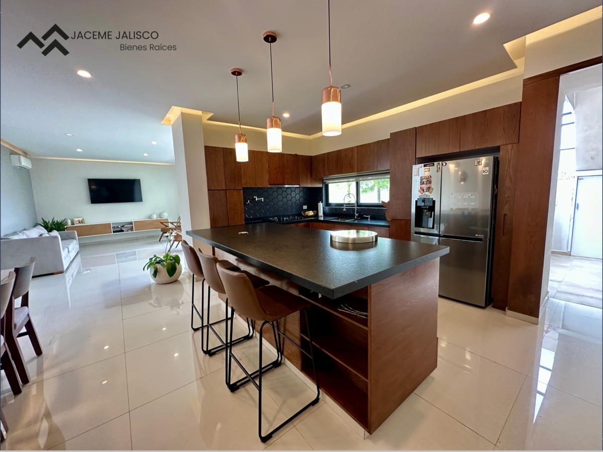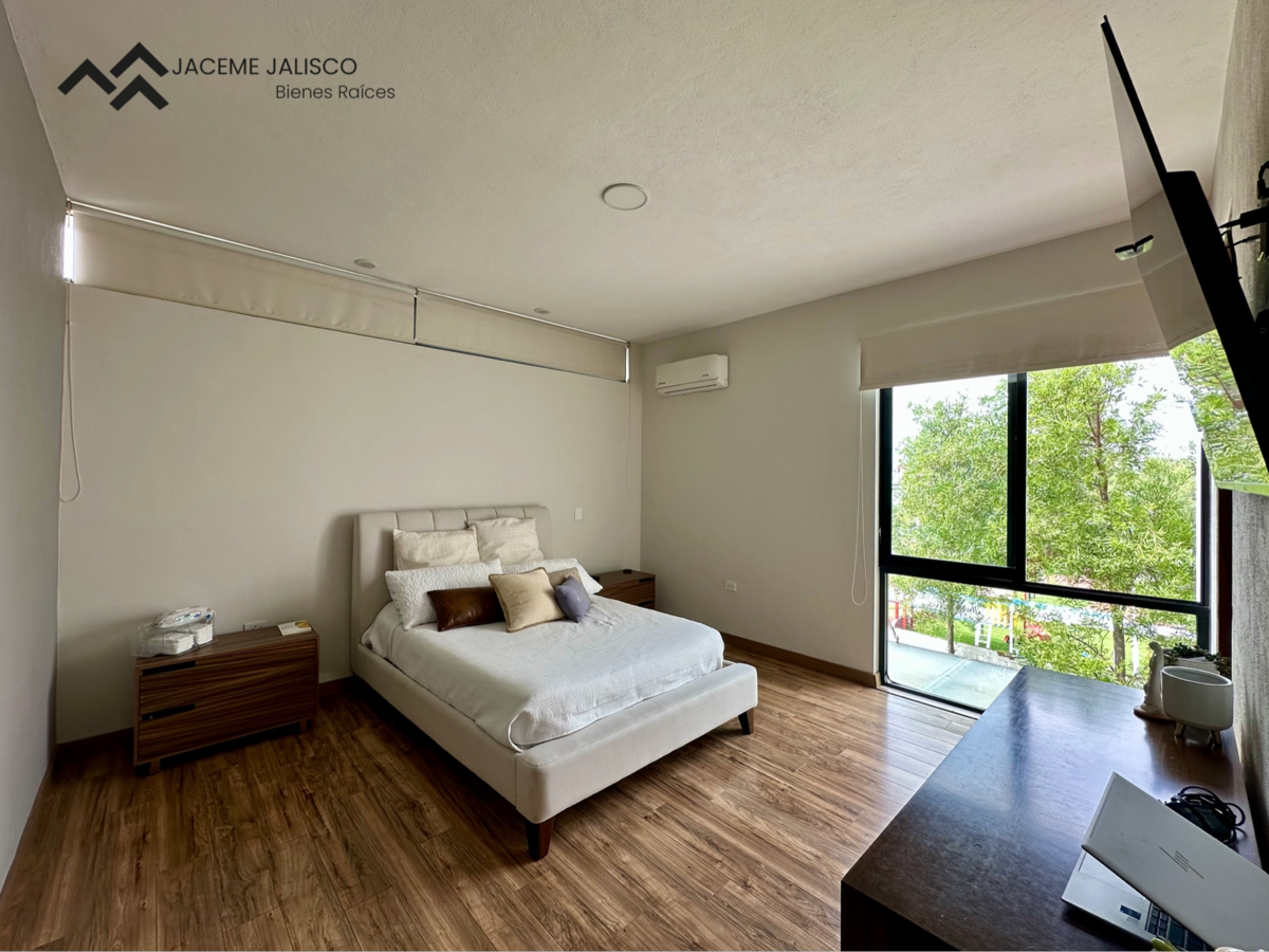 Planta alta: 3 recámaras, principal con vestidor y baño, secundarias con closet y baño compartido, estar de TV o área de estudio.