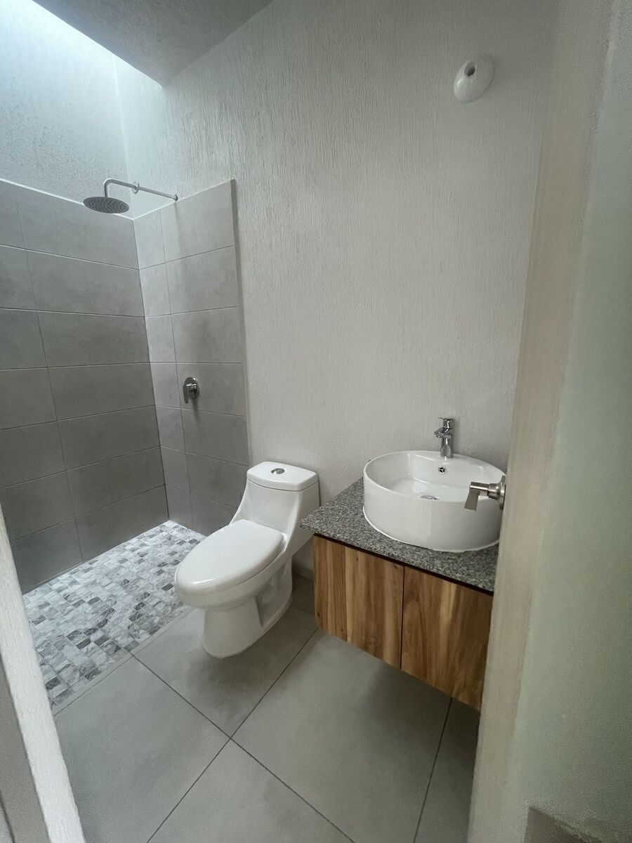 La casa cuenta con acabados de calidad y una recámara y baño completo en planta área de cochera, y estacionamientos para dos autos. En la planta alta dos recámaras y una área flex que pudría ser estudio o cuarta recámara.
