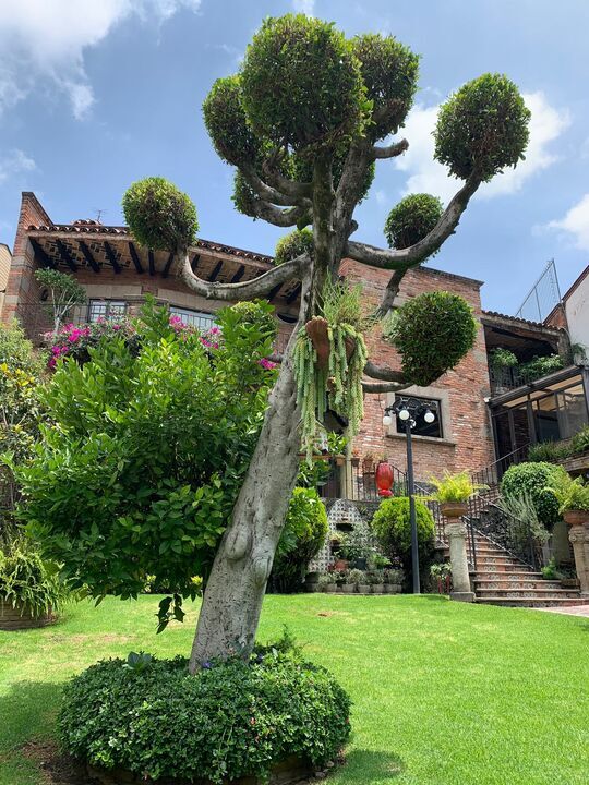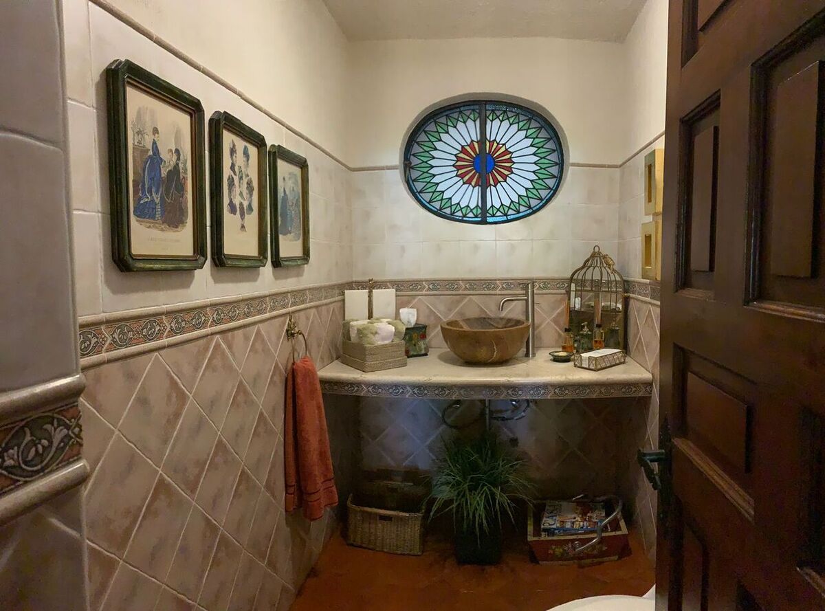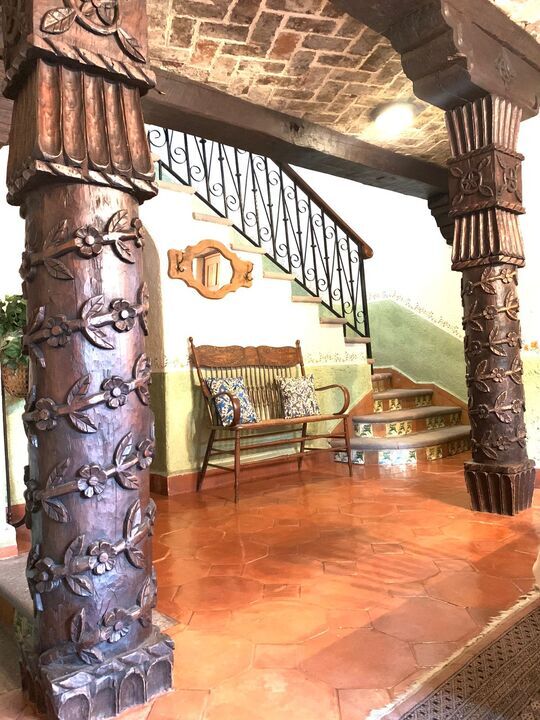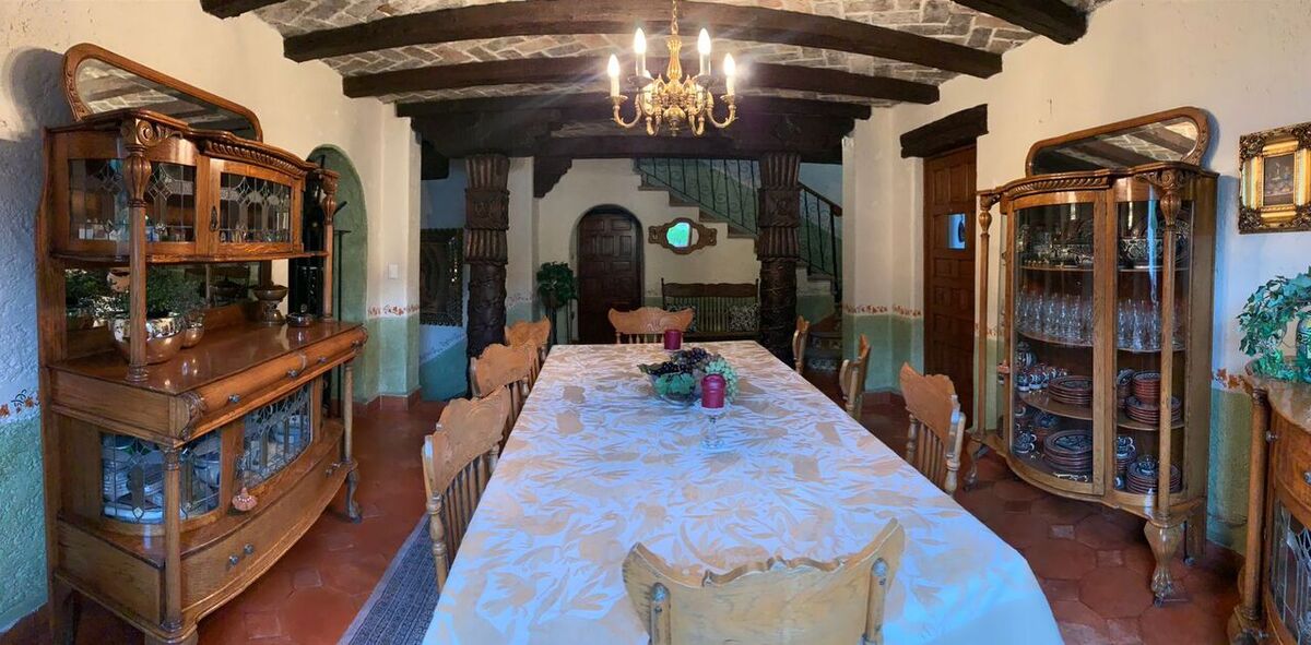 Mexican Style House with exposed brick facades, vaults, gualdras, and various architectural elements related to this style.