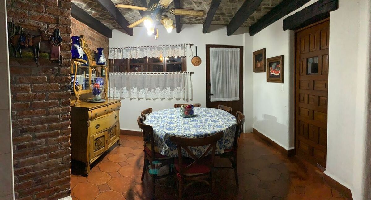 Beautiful garden in front, terrace, library, independent guest room, game room, 3 covered car spaces, area to keep dogs, Cistern and Solar Panels.