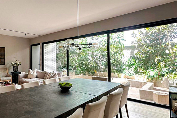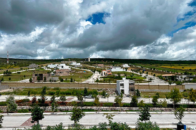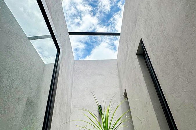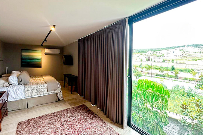 Cisterna 5,000 lt de capacidad, bomba, filtro, boiler y cocina abierta equipada con encimera de granito San Gabriel cepillado, ventanas con aluminio negro eurovent, dos cajones de estacionamiento semi techado.