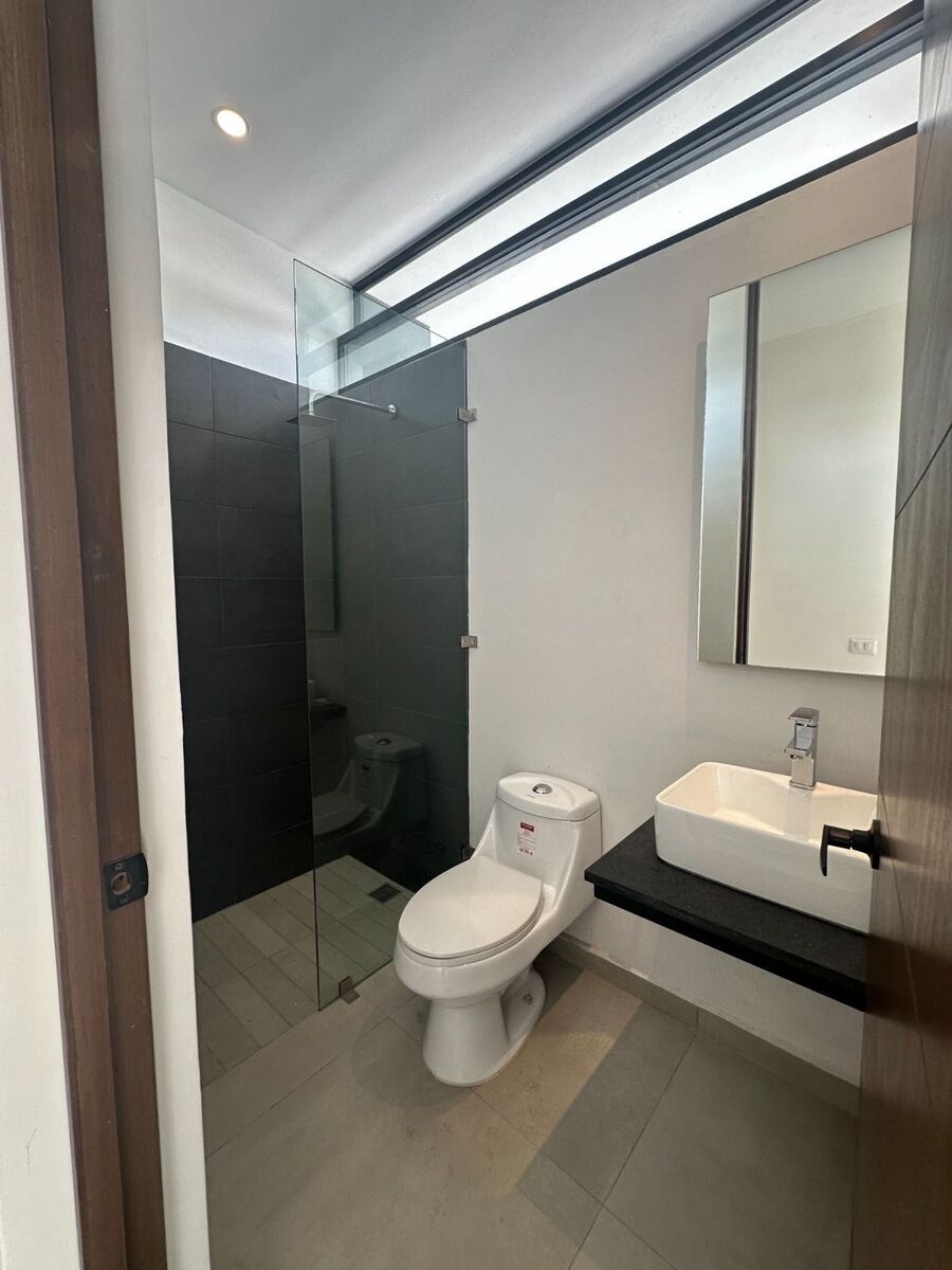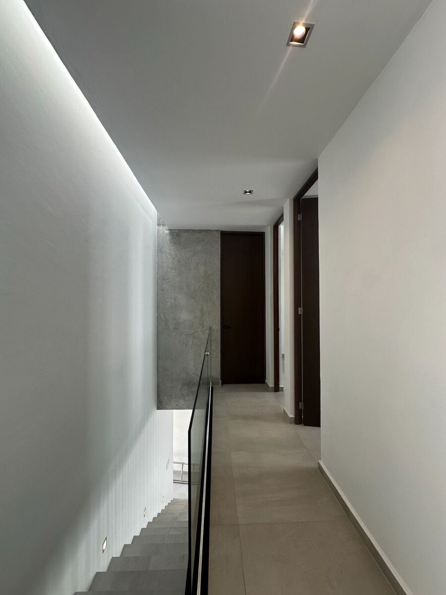 En planta baja tiene incluye estudio, un baño completo y 2 lugares de estacionamiento en PB. 3 amplias habitaciones, 2 de estas incluyen baño completo en PA. También tiene un lindo jardín y área de lavado, preparación para tres equipos de aire acondicionado, cableado listo para equipos en habitaciones. Tiene tinaco y cisterna.