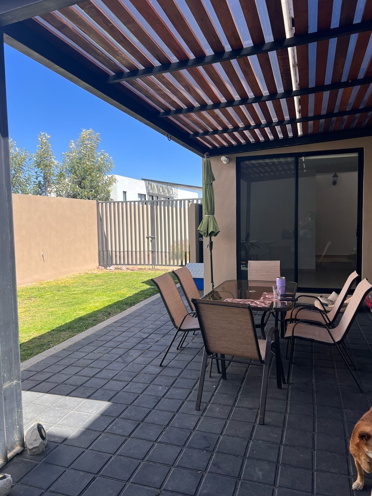 Terraza con pergola y adoquin.