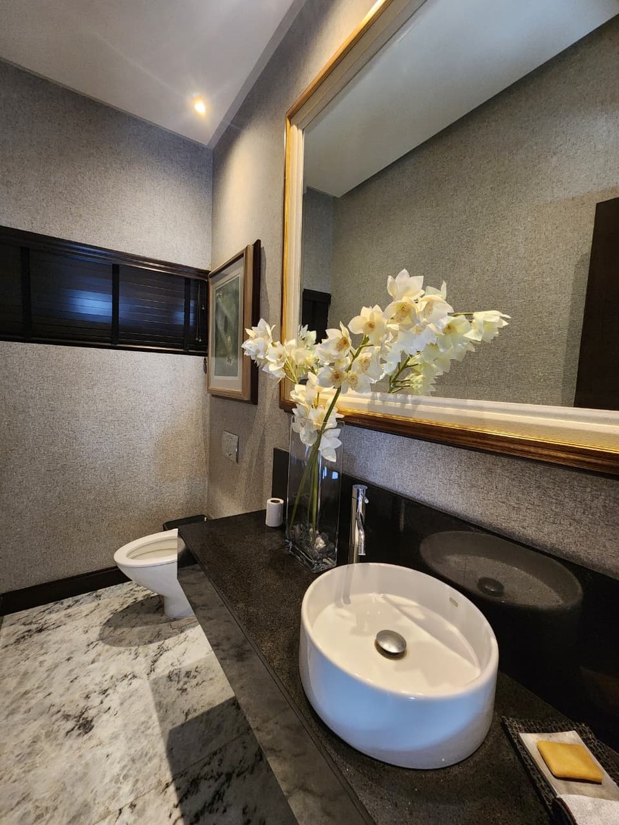 En el nivel superior, la suite principal ofrece vistas panorámicas a la Sierra Madre, vestidor de gran tamaño y baño con acabados de mármol europeo. Las tres recámaras cuentan con climas seccionados y aislamiento acústico.
