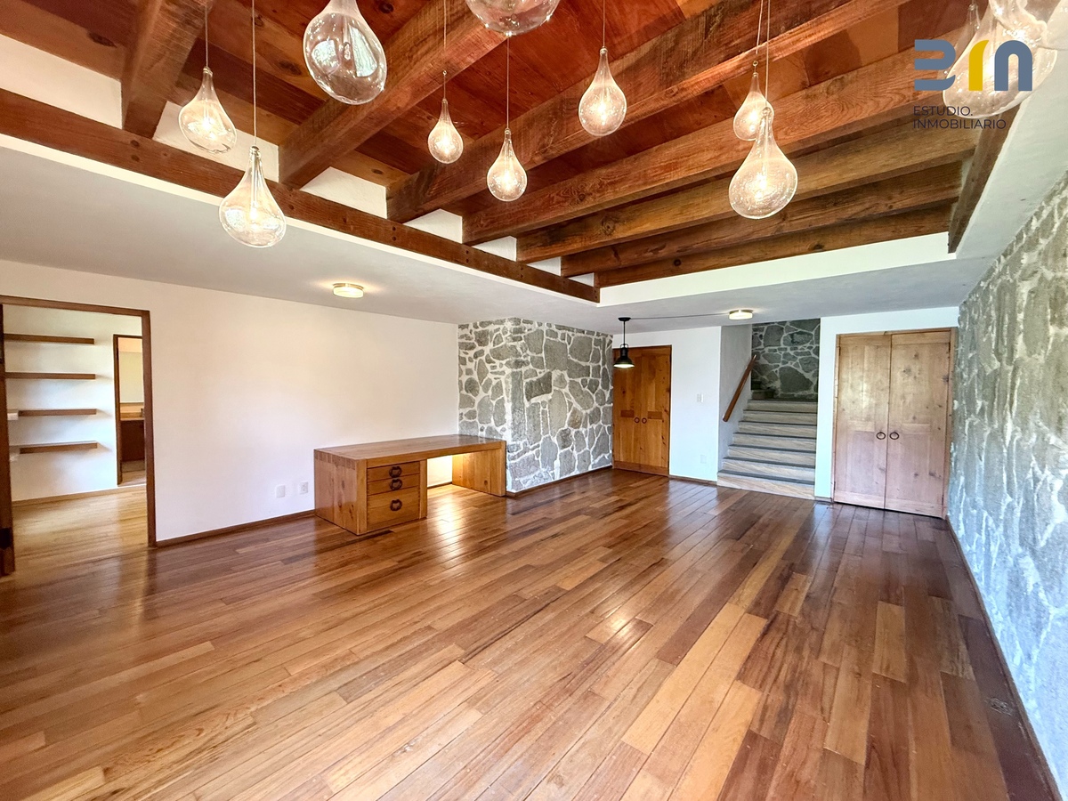 En planta alta tres confortables recámaras con baño y vestidor, sala de televisión social y oficina/despacho. Cuenta con un salón de juegos que puede ser un área de trabajo o tareas, y una cuarta recámara con baño y vestidor.