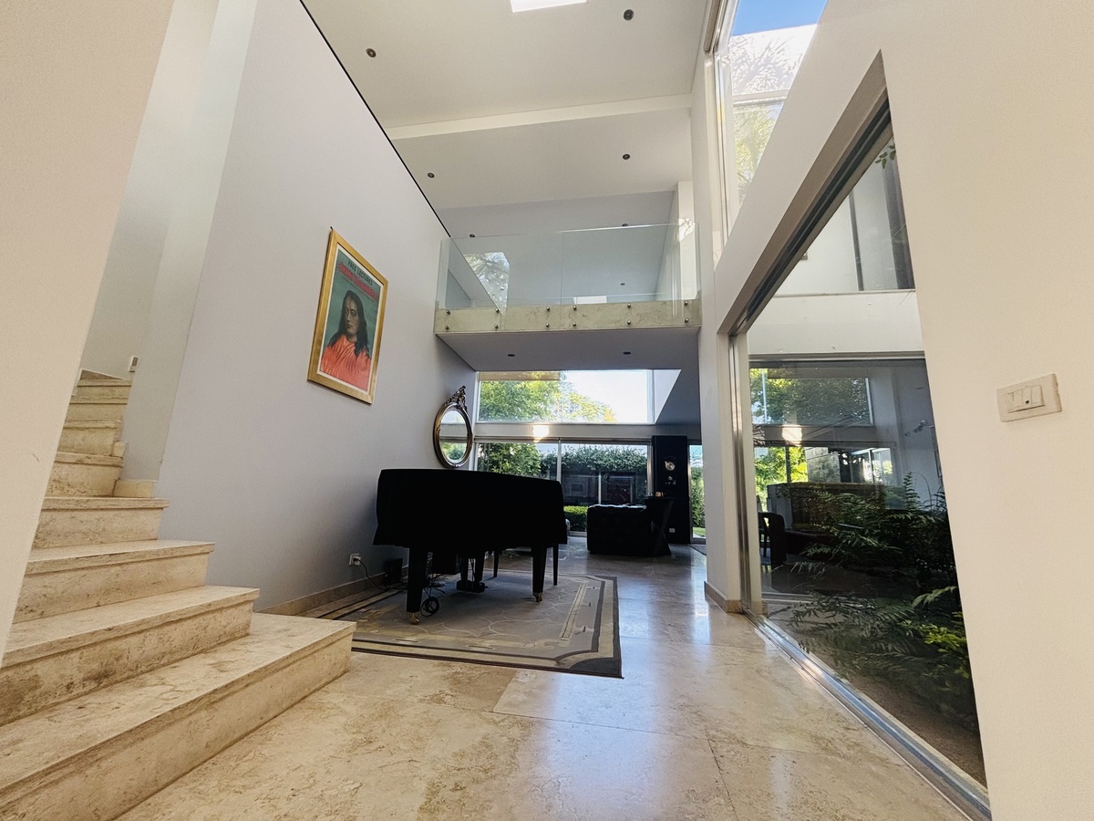 Ground Floor: garage for 6 cars, double-height entrance with distribution space, double-height living room, dining room, large window leading to the garden and pool with heating, equipped kitchen with space for a breakfast area, large pantry space, laundry area, drying area, guest bathroom, large garden, service hallway, independent bungalow that can be used as an office or play area, with bathroom.