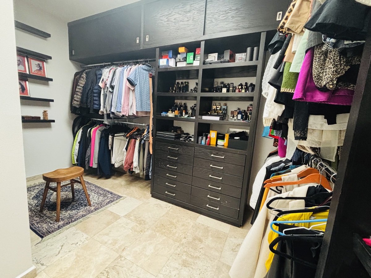 Upper Floor: master bedroom with large walk-in closet and full bathroom, second secondary bedroom with walk-in closet and full bathroom, third bedroom with walk-in closet, full bathroom, and loft, fourth bedroom with closet and full bathroom, TV area.