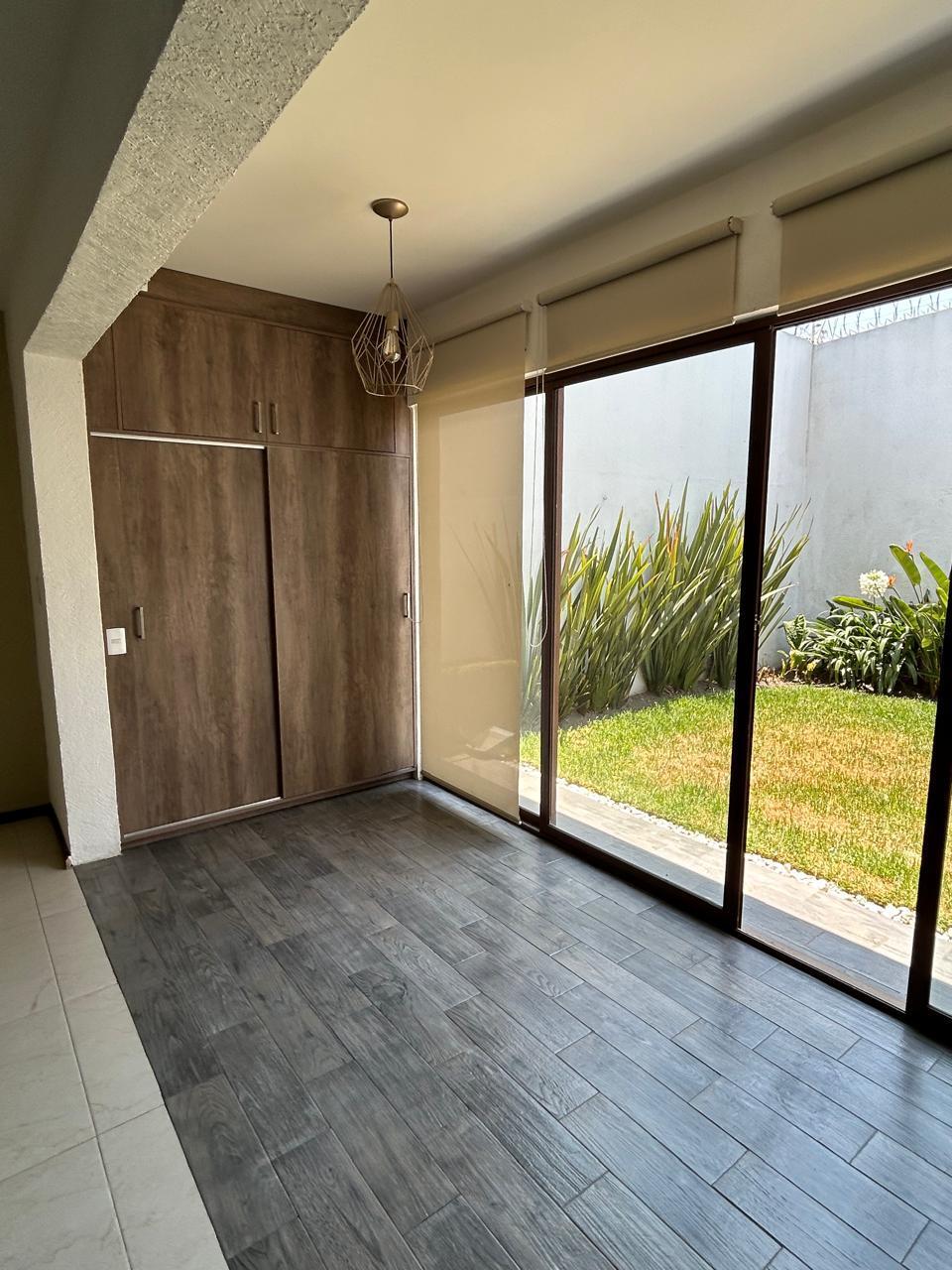 Casa en fraccionamiento, ubicada en privada, cuenta con terreno excedente y ampliación. En planta baja con estacionamiento para dos autos, medio baño para visitas, clóset de visitas, bodega de guardo bajo escalera, cocina integral con base y barra de granito, alacena, estancia sala comedor, sala de estar con vista al jardín y armario, jardín posterior de 30 mts con cerco eléctrico.Planta alta con tres recámaras, la principal es de muy buen tamaño, cuenta con vestidor doble amplio, baño remodelado con doble lavabo, espejo, cancel de cristal templado, área de estudio ideal para Home office. Las recámaras secundarias con clóset y un baño completo (compartido) con cancel de cristal templado para el servicio de estas. Clóset de blanco en el pasillo de distribución.En tercer nivel se encuentra el área de lavado techada y con piso de loseta. También se encuentra un amplio family room con terraza que puede tener diversos usos.La casa es iluminada, cuenta con lámparas decorativas, persianas y cortineros.
