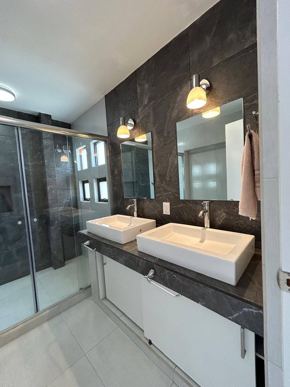 House in a subdivision, located in a private area, has excess land and an extension. On the ground floor with parking for two cars, half bathroom for guests, guest closet, storage room under the stairs, integral kitchen with granite base and bar, pantry, living-dining room, living room with a view of the garden and wardrobe, backyard garden of 30 meters with electric fence. Upper floor with three bedrooms, the main one is of very good size, has a spacious double dressing room, remodeled bathroom with double sink, mirror, tempered glass partition, study area ideal for Home office. The secondary bedrooms have closets and a full bathroom (shared) with tempered glass partition for their service. Linen closet in the distribution hallway. On the third level is the covered laundry area with tile flooring. There is also a large family room with a terrace that can have various uses. The house is bright, has decorative lamps, blinds, and curtain rods.