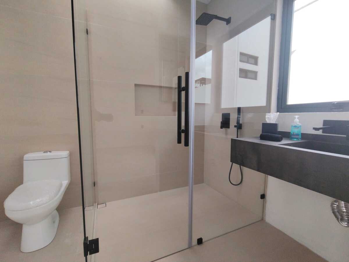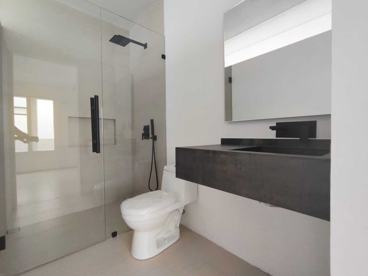 Segundo nivel: Tres recámaras con baño completo cada una. La recámara principal tiene balcón y walkin-closet.