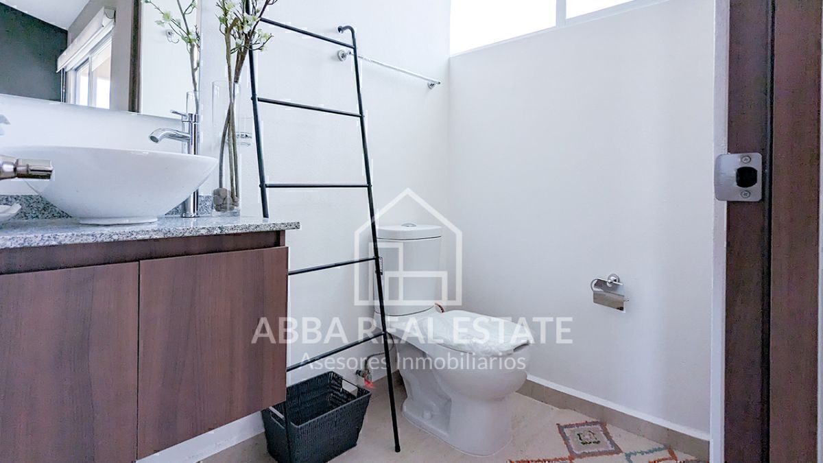 La casa cuenta con 3 recamaras con closet, la principal con baño propio y las recamaras secundarias comparten baño. En planta baja sala y comedor de buen tamaño, cocina abierta, cuarto de lavado, medio baño de visitas y jardín de buen tamaño.