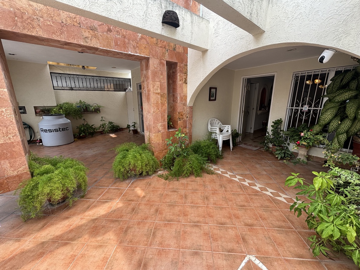La casa cuenta con cochera techada para dos autos ,sala comedor ,cocina con gavetas ,área de lavado , pasillo de servicio ,patio con área techada ,dos recámaras secundarias con closet , un baño completo ,recámara principal con closet y baño completo .