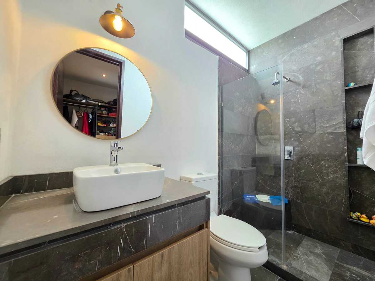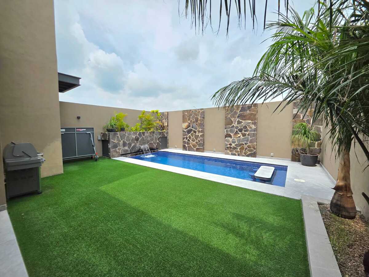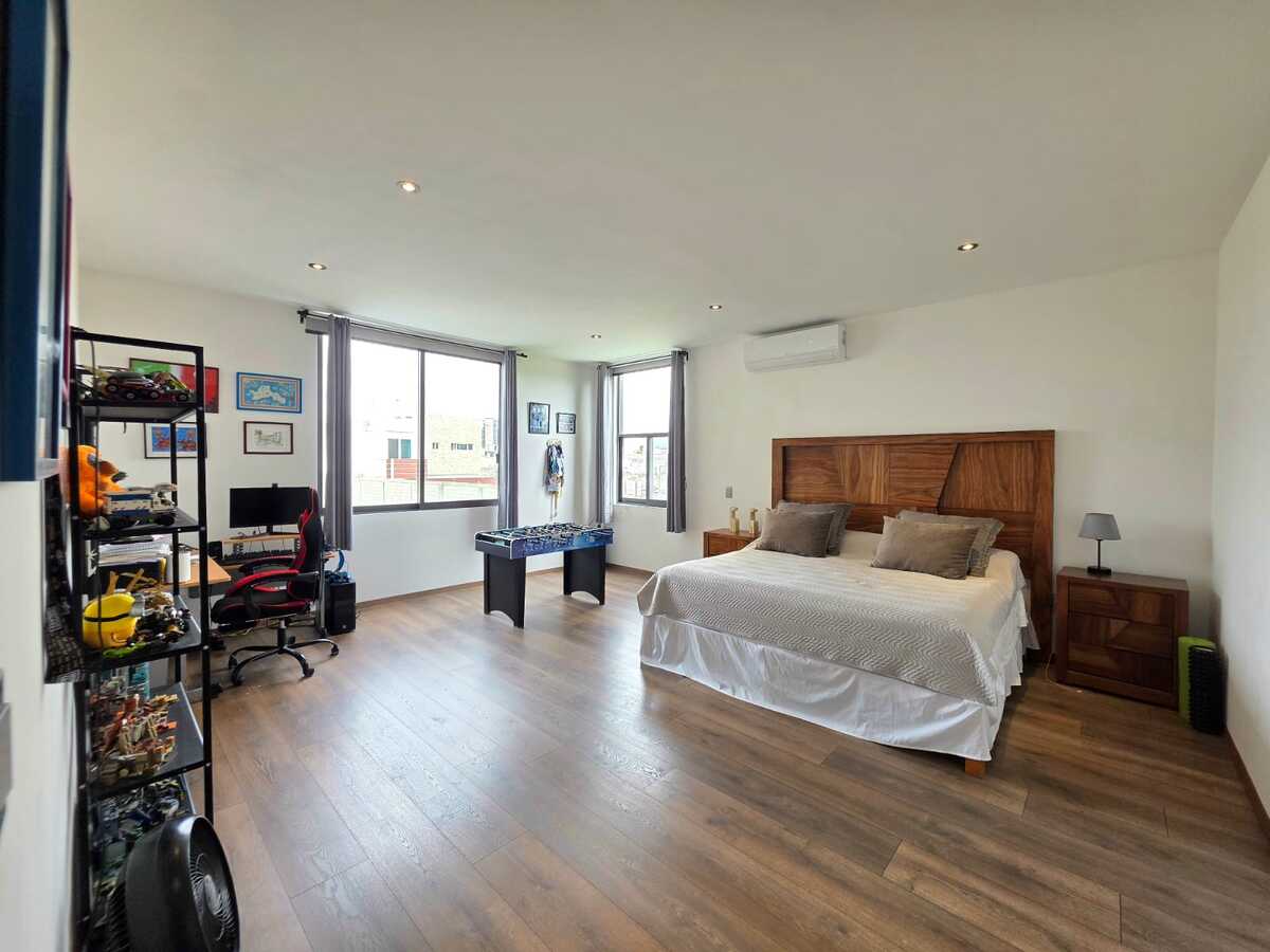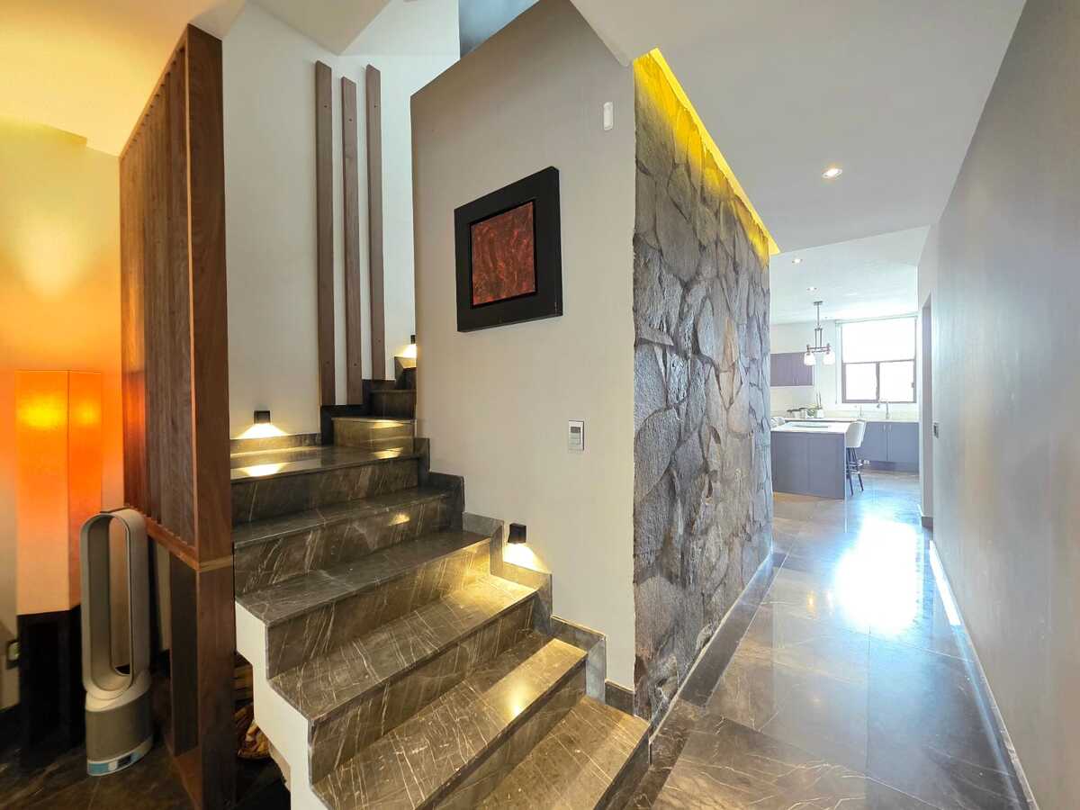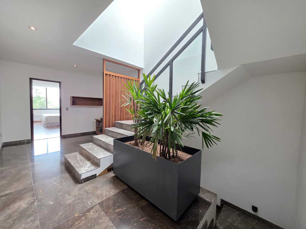 Entre las características destacadas de esta propiedad se encuentran un carril de nado, un jardín amplio, así como un jardín en la azotea con vista a la ciudad y una recámara. Con materiales de alta calidad como ladrillo, cemento, piedra y ventanas panorámicas, cada rincón se ha diseñado pensando en el confort y el estilo.