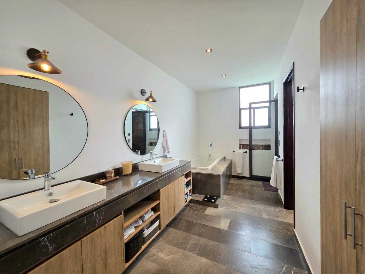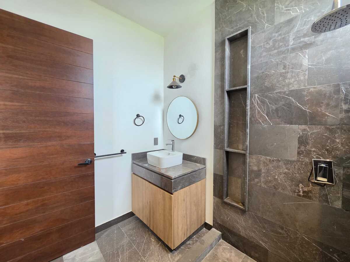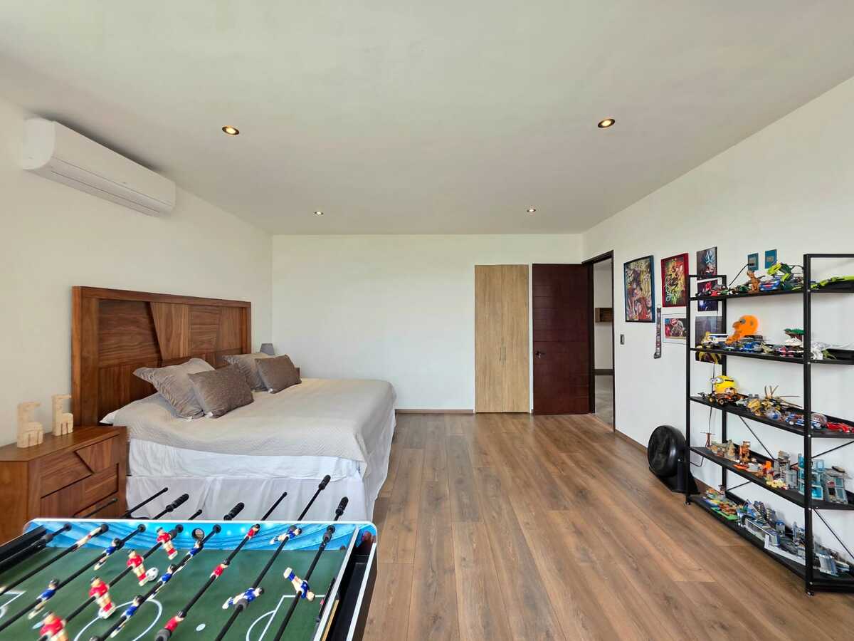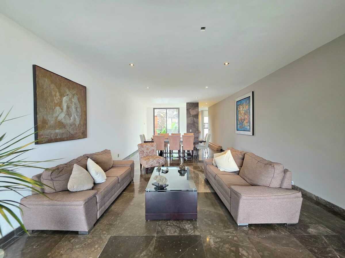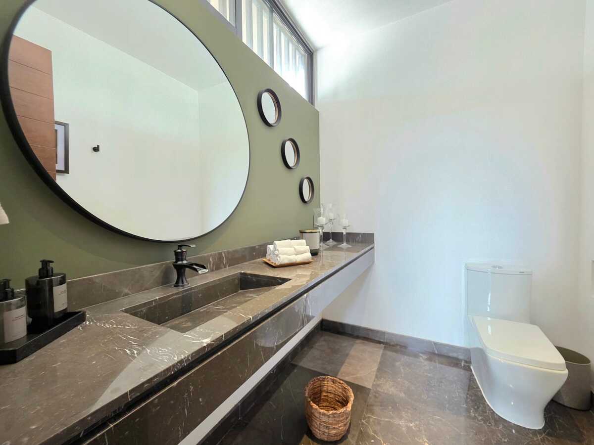La casa cuenta con 4 amplias habitaciones, cada una con su baño privado, así como un baño de invitados y un baño de servicio. La distribución interior incluye un recibidor, vestidor, estudio, cuarto de lavado y cuarto de servicio. Además, la cocina está equipada con electrodomésticos empotrados, una barra de desayuno y cubiertas de granito, perfectas para inspirar al chef que lleva dentro.
