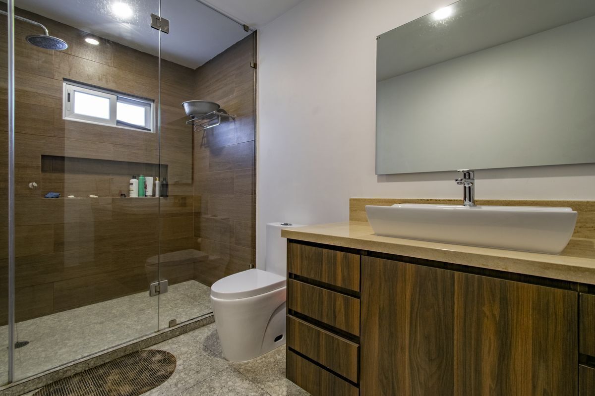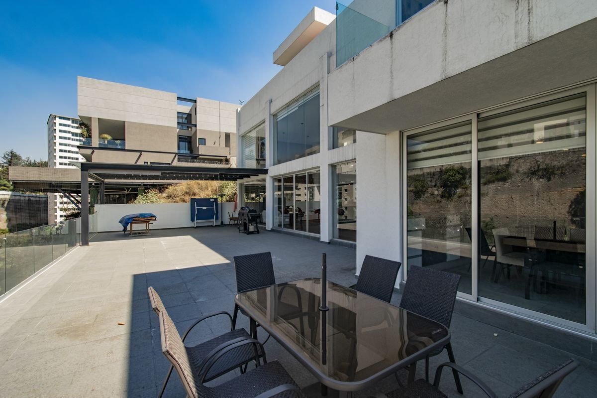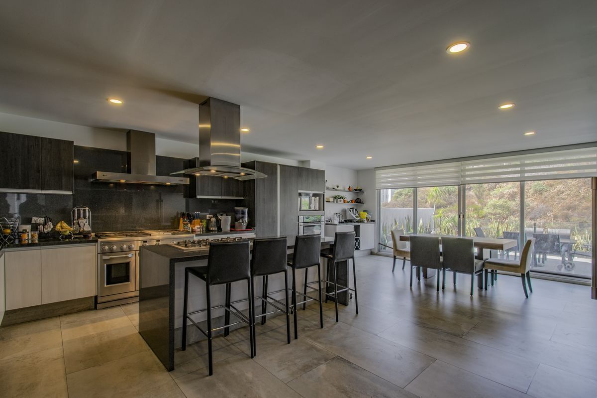 Saliendo de la cocina te encuentras con sala comedor con doble altura, y un bar equipado con barra y cantina , medio baño de gran decoración que da servicio a esta área, en este mismo nivel se encuentra una espectacular terraza con excelentes vistas desde cualquier punto de la casa.