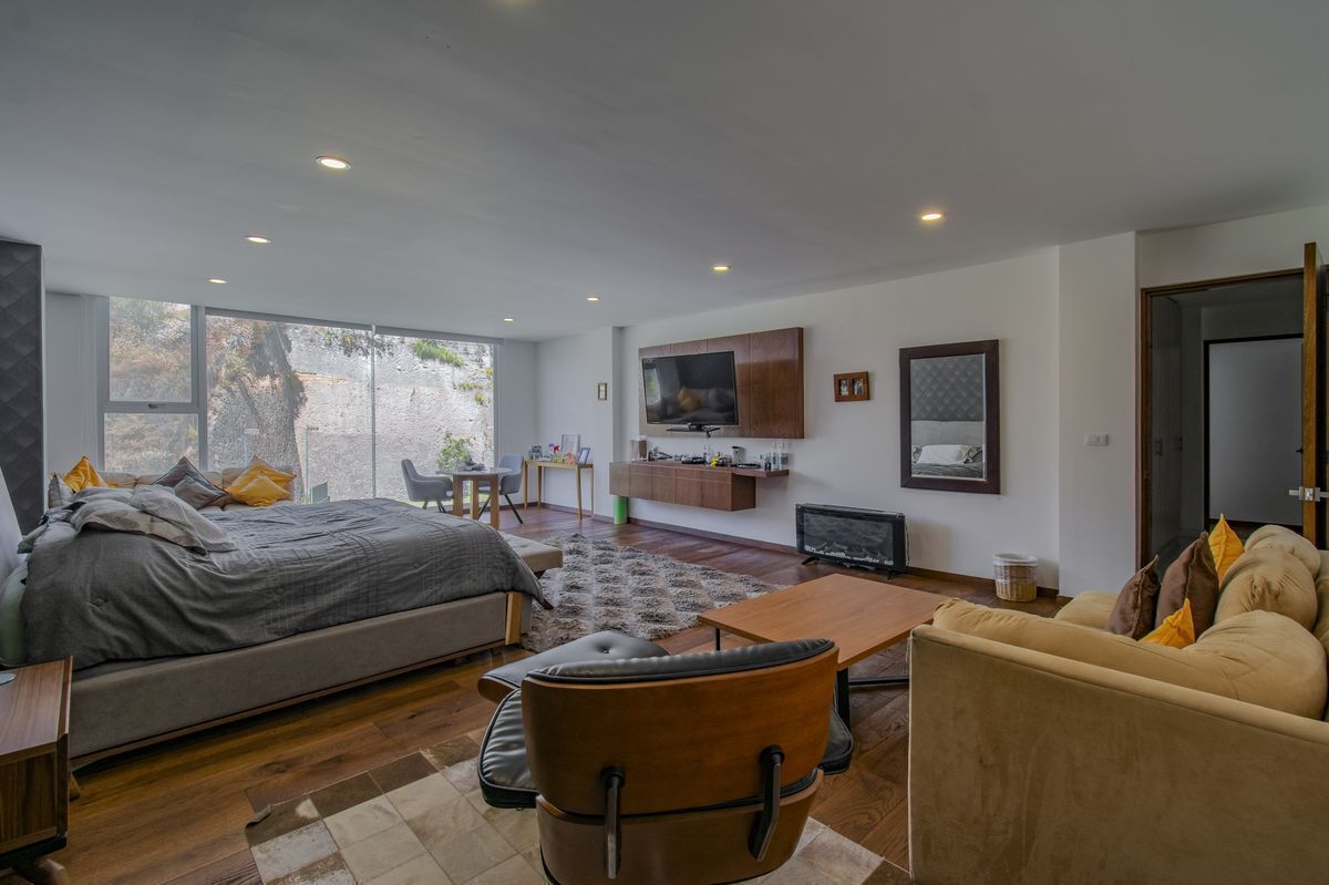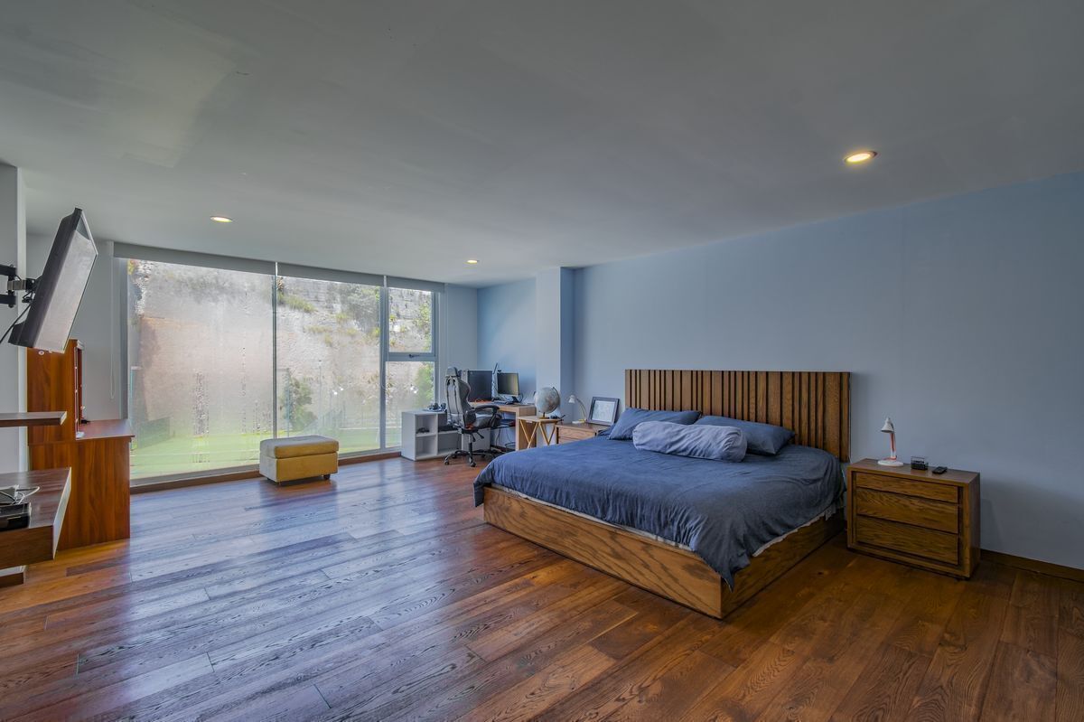Cuarto para chofer, cuarto de servicio, lavandería, bodegas. Pisos de mármol y madera, 8 lugares de estacionamiento.
