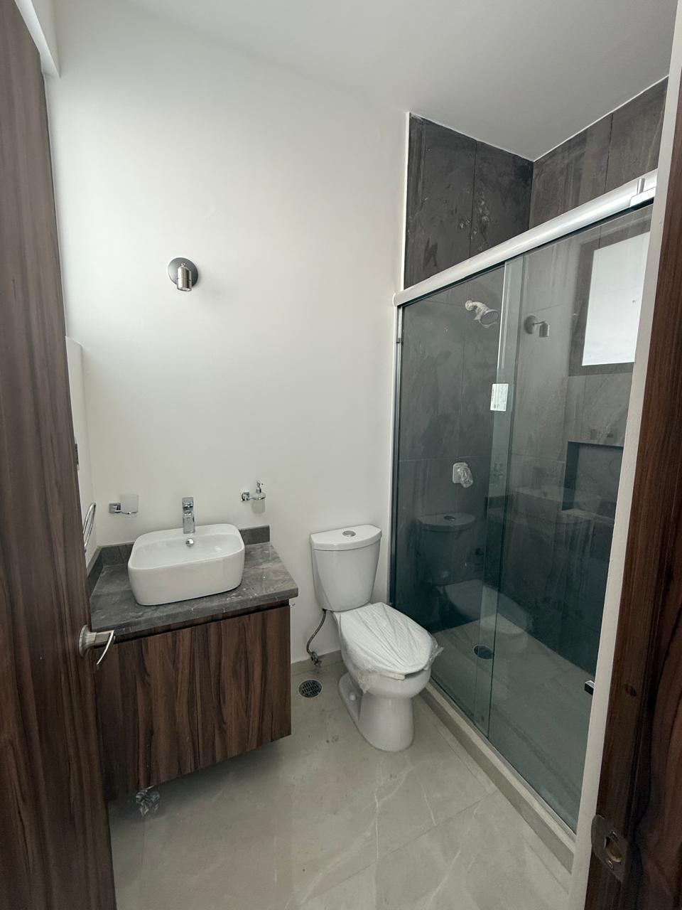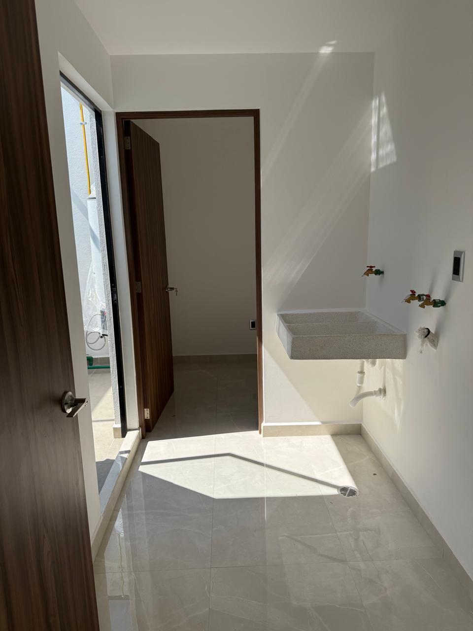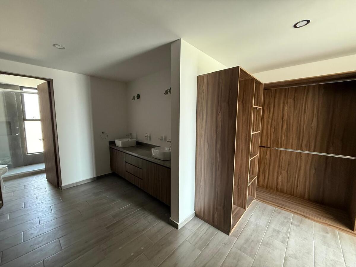 Recámara principal con vestidor, baño completo con dos lavabos y terraza.