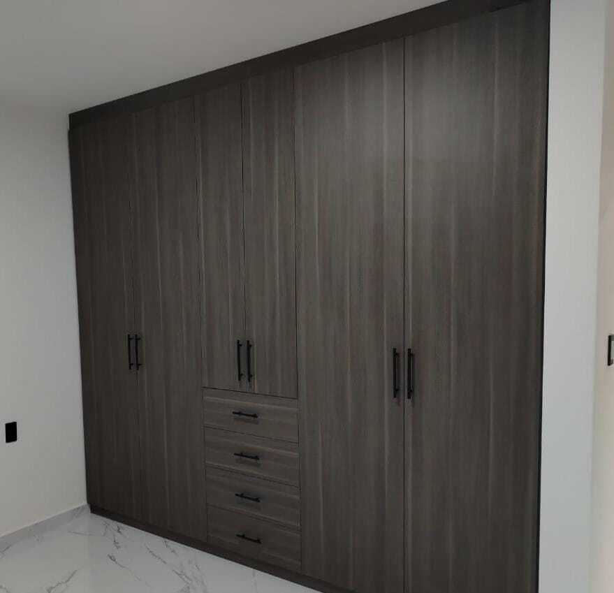 La planta superior alberga el área de descanso con tres recámaras bien iluminadas. Las recámaras cuentan con amplios clósets de madera de piso a techo, ofreciendo gran capacidad de almacenamiento. La casa dispone de dos baños y medio, uno de ellos integrado en la recámara principal. Los baños presentan acabados de alta calidad, como azulejos con diseño de mármol y accesorios modernos.