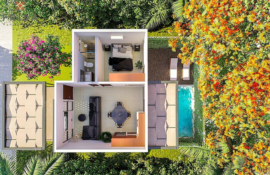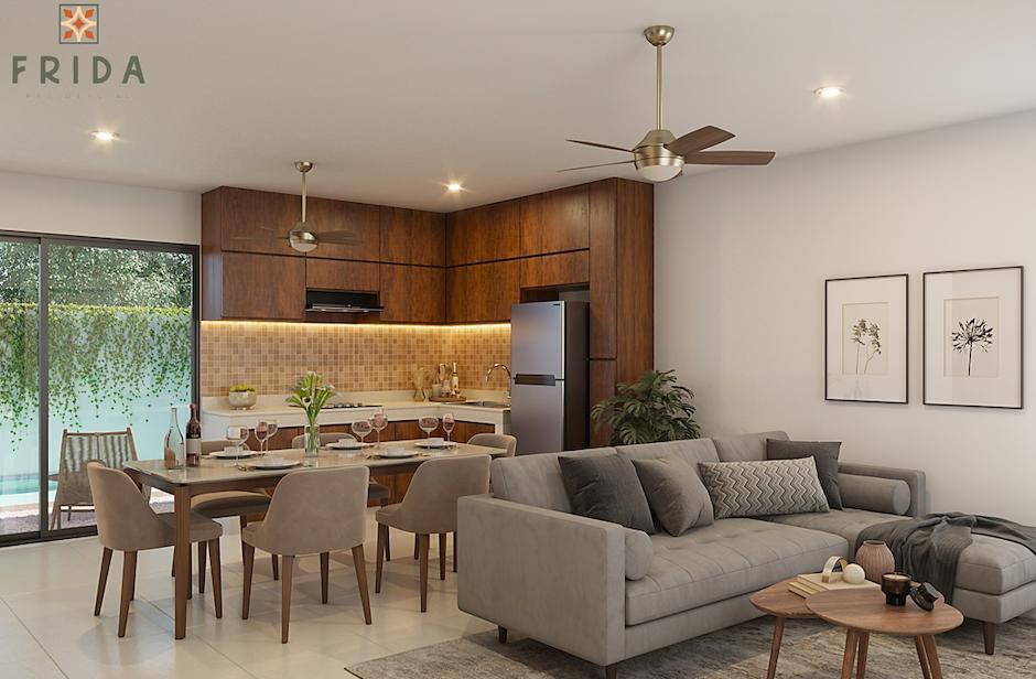 -The information, including the delivery date and other additional details, is subject to change without prior notice.Villa en venta en Frida Residencial: Descubre esta encantadora villa ubicada en el exclusivo complejo Frida Residencial, diseñado para ofrecer el máximo confort y tranquilidad a sus residentes. Esta comunidad cerrada cuenta con casas de 1, 2 y 3 recámaras, lo que la convierte en una opción ideal para vivir en familia.