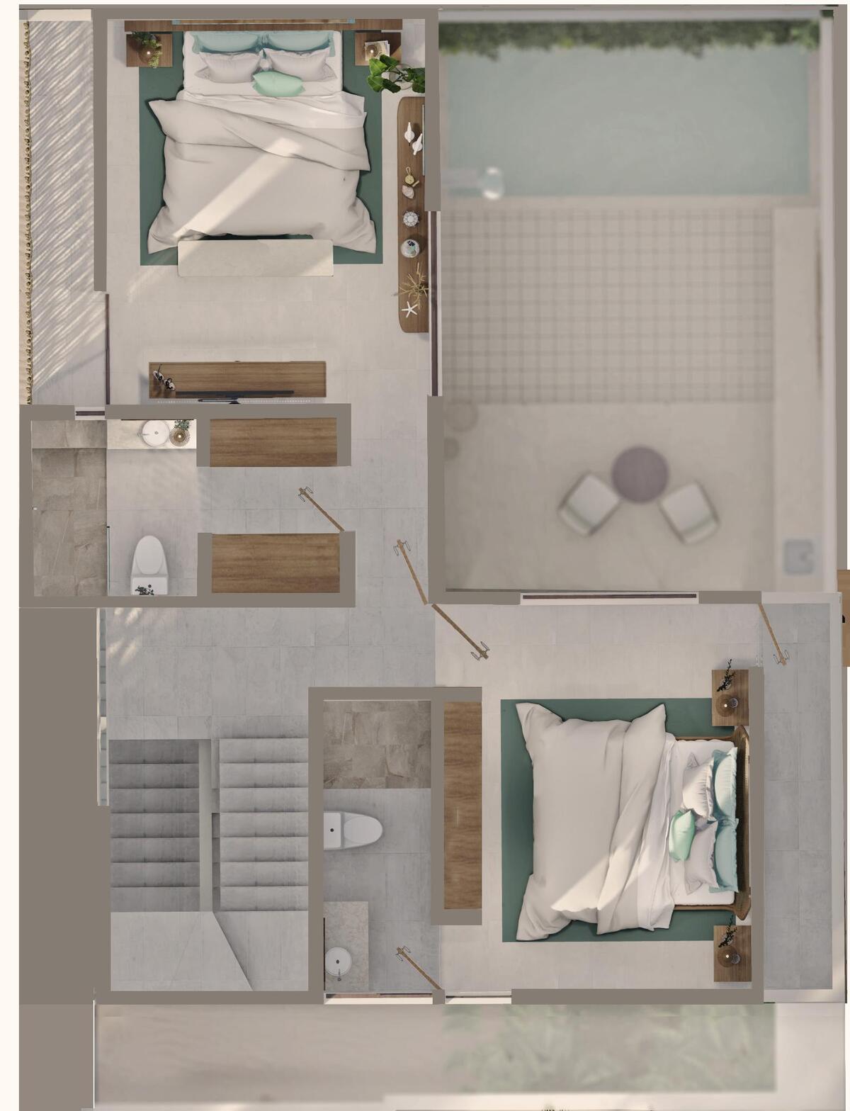 -The information, including the delivery date and other additional details, is subject to change without prior notice.Sumérgete en el lujo costero con estas magníficas villas en venta en Playa San Benito. Situadas a pocos pasos de las playas yucatecas, centros comerciales y hospitales, estas residencias ofrecen una vida de comodidad y conveniencia.