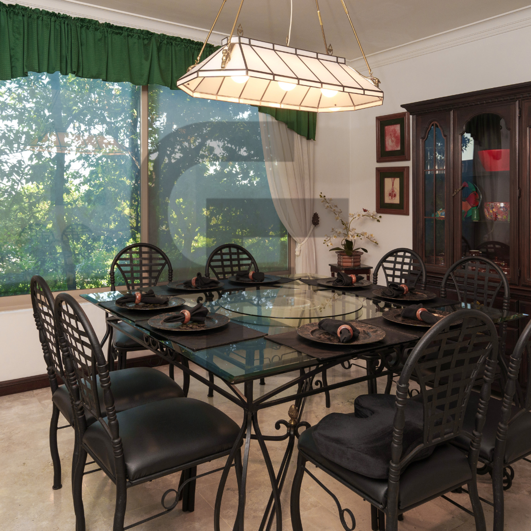 Garage for 8 cars, security booth, solar panels, central air conditioning, 11,000-liter cistern, servant's bathroom, and three storage rooms. The neighborhood is private and has 24/7 security. You won't find another house in San Pedro Garza García of this size, with these finishes and at this price. It's an opportunity!Hermosa casa rodeada de naturaleza, con un imponente frente de 80 metros, acabados de lujo, pisos de mármol, madera en algunos techos y muros, y hermosas vistas en todas las áreas.