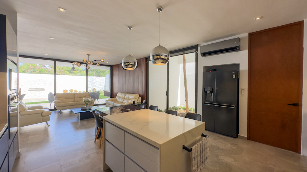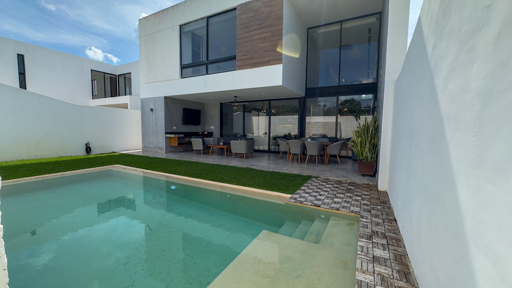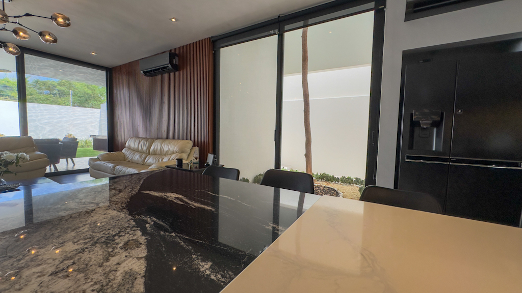 - Bank credit.Casa en venta, completamente equipada con diseño único, localizada en privada residencial al norte de Mérida, en la privada Parque Natura, muy cerca del periférico norte de Mérida.