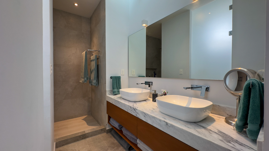 - Habitación principal con closet vestidor y baño completo con doble lavabo.