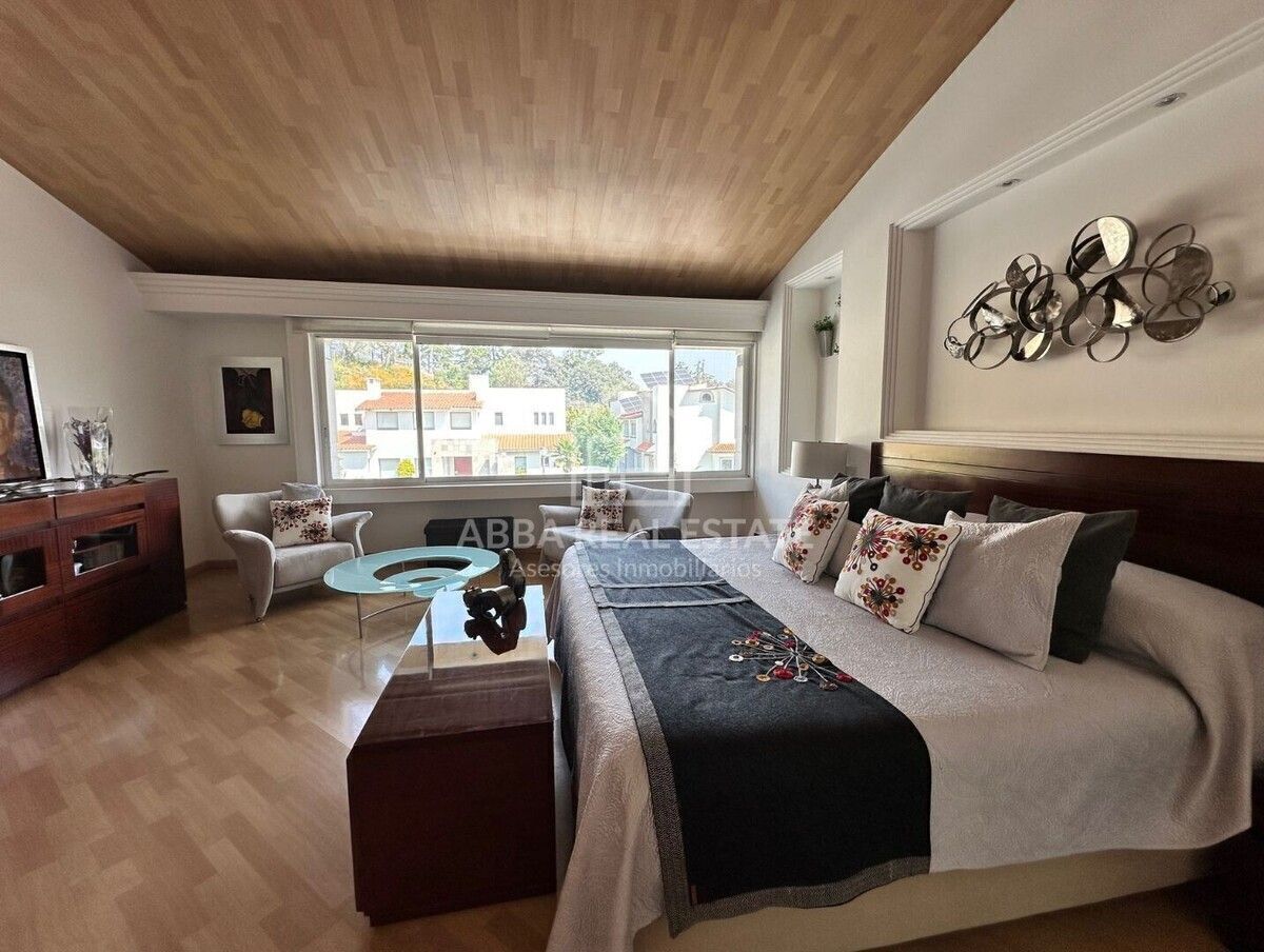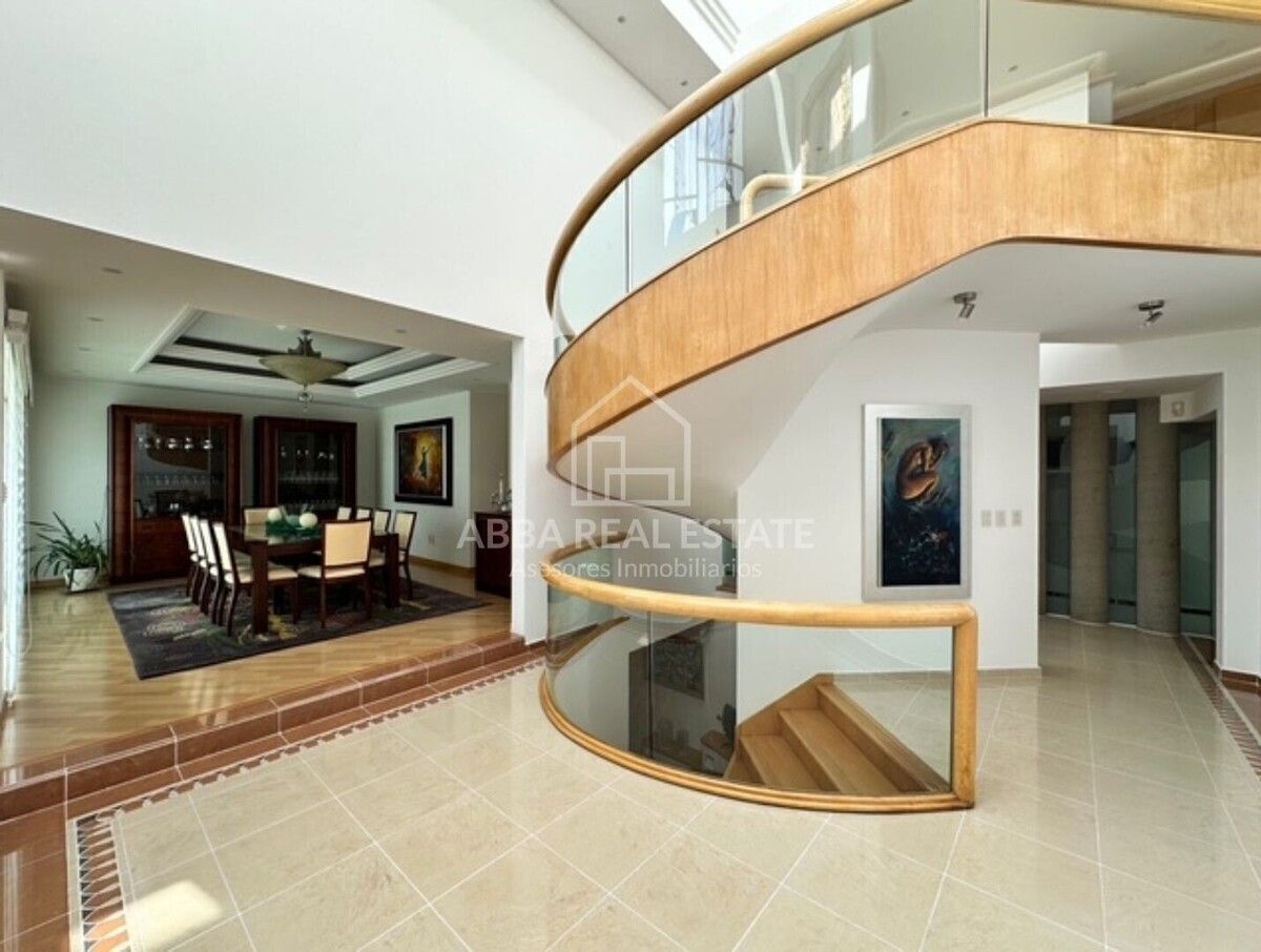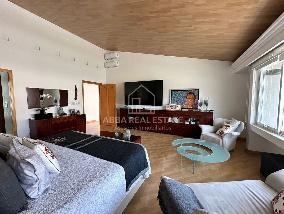 Para subir a la planta alta esta una escalera tipo caracol de madera y barandal de cristal templado, family room, y 4 recamaras. La principal es de un super tamaño en la cual cabe una salita y un escritorio, minisplit de pared, vestidor con tragaluz, baño completo con tina y regadera. Dos recamaras, cada una con vestidor y baño completo y una de ellas con balcón, la cuarta recamara tiene clóset y baño completo.