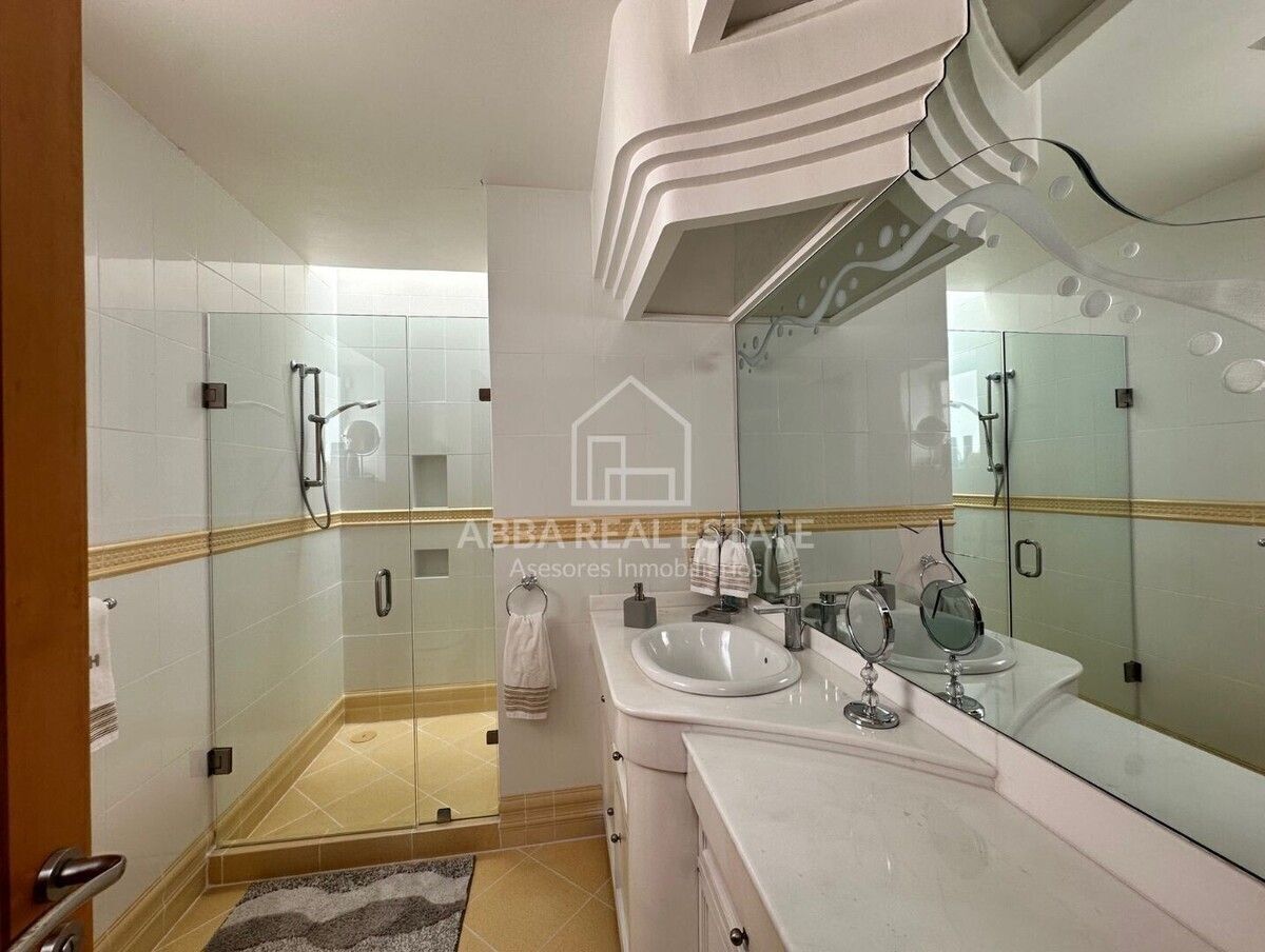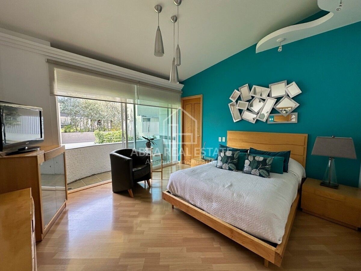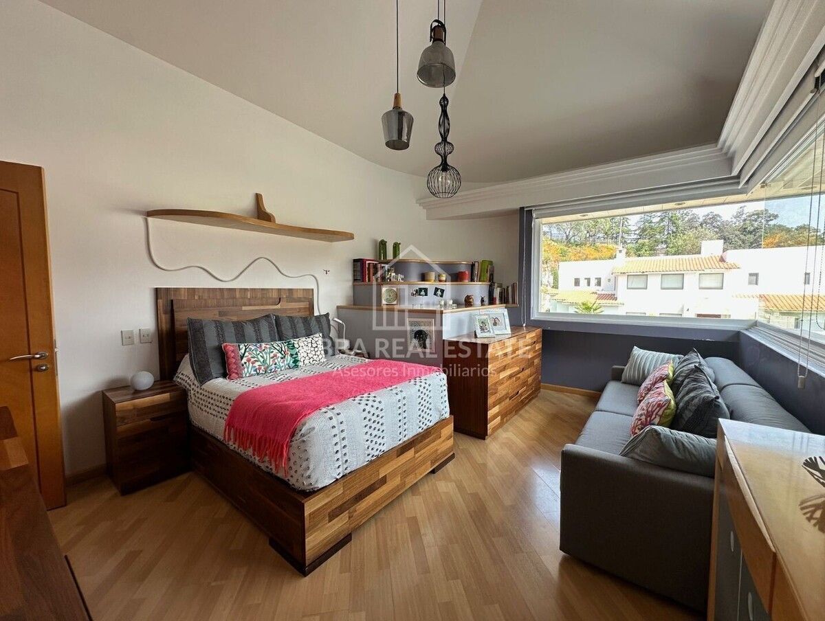 Para subir a la planta alta esta una escalera tipo caracol de madera y barandal de cristal templado, family room, y 4 recamaras. La principal es de un super tamaño en la cual cabe una salita y un escritorio, minisplit de pared, vestidor con tragaluz, baño completo con tina y regadera. Dos recamaras, cada una con vestidor y baño completo y una de ellas con balcón, la cuarta recamara tiene clóset y baño completo.