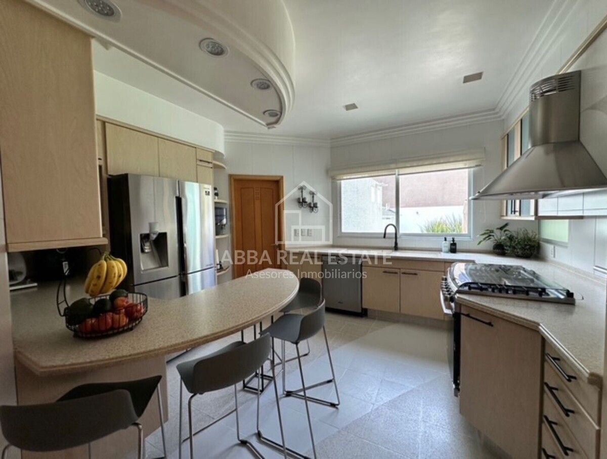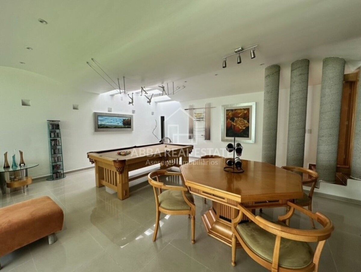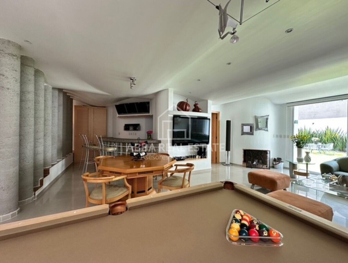 Ingresando a la casa hay un recibidor con un domo con doble altura que permite tener una buena iluminación, sala, comedor con terraza frontal, baño de visitas, despacho, cocina con isla y alacena, antecomedor, amplio salón de juegos (bar, mesa de billar, mesa de poker y sala de tv) baño de visitas y salida al jardín trasero que cuenta con terraza, asador, fuente de cantera y dos baños para las visitas, área de lavado y patio de tendido.
