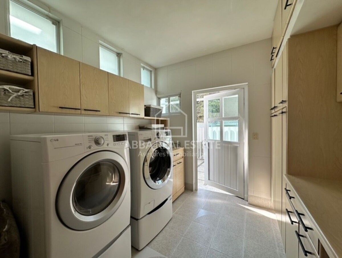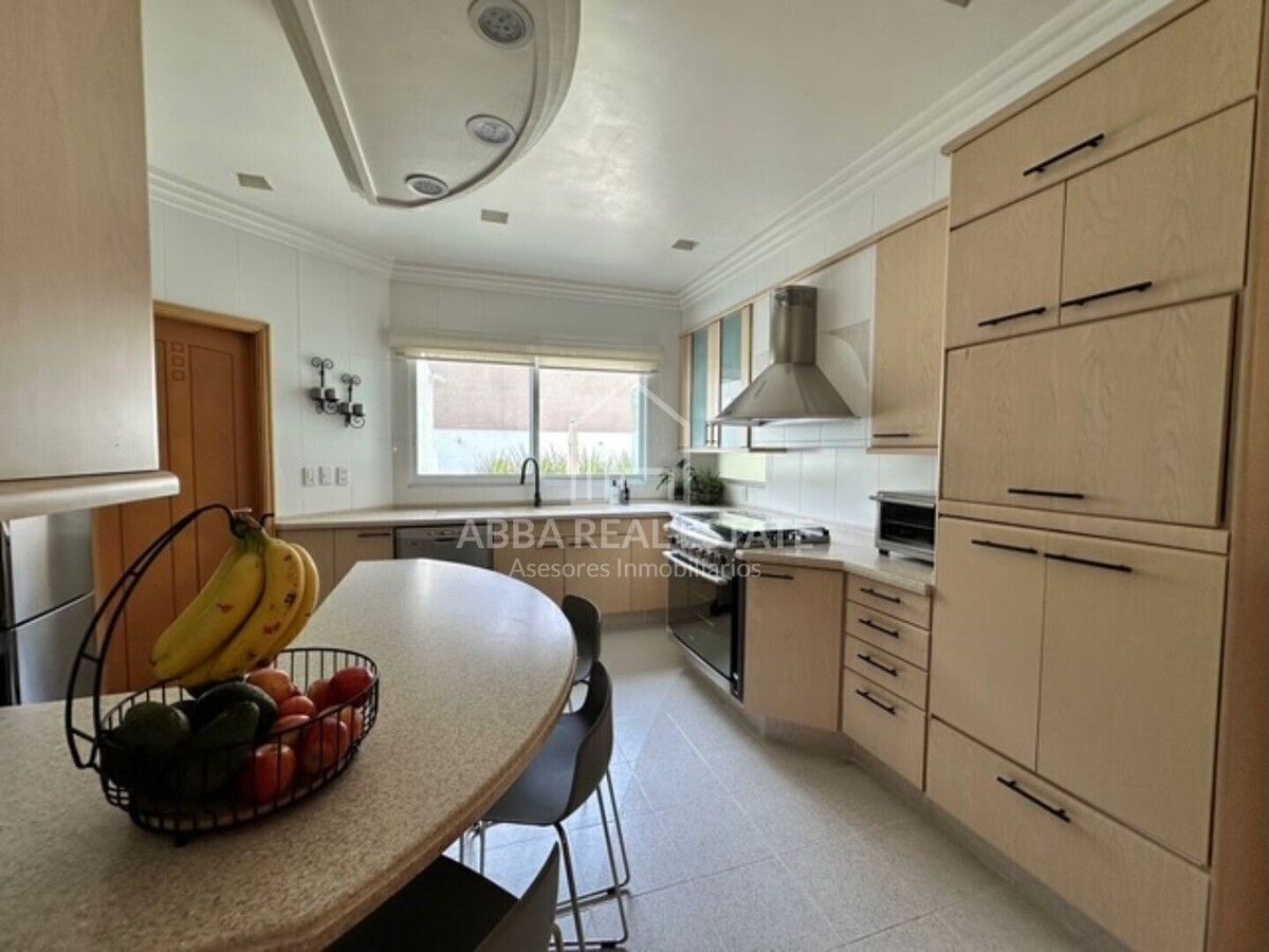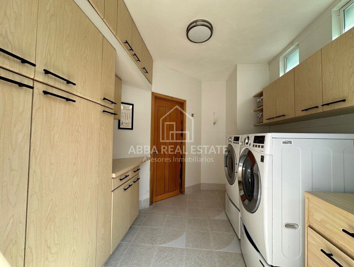 Ingresando a la casa hay un recibidor con un domo con doble altura que permite tener una buena iluminación, sala, comedor con terraza frontal, baño de visitas, despacho, cocina con isla y alacena, antecomedor, amplio salón de juegos (bar, mesa de billar, mesa de poker y sala de tv) baño de visitas y salida al jardín trasero que cuenta con terraza, asador, fuente de cantera y dos baños para las visitas, área de lavado y patio de tendido.