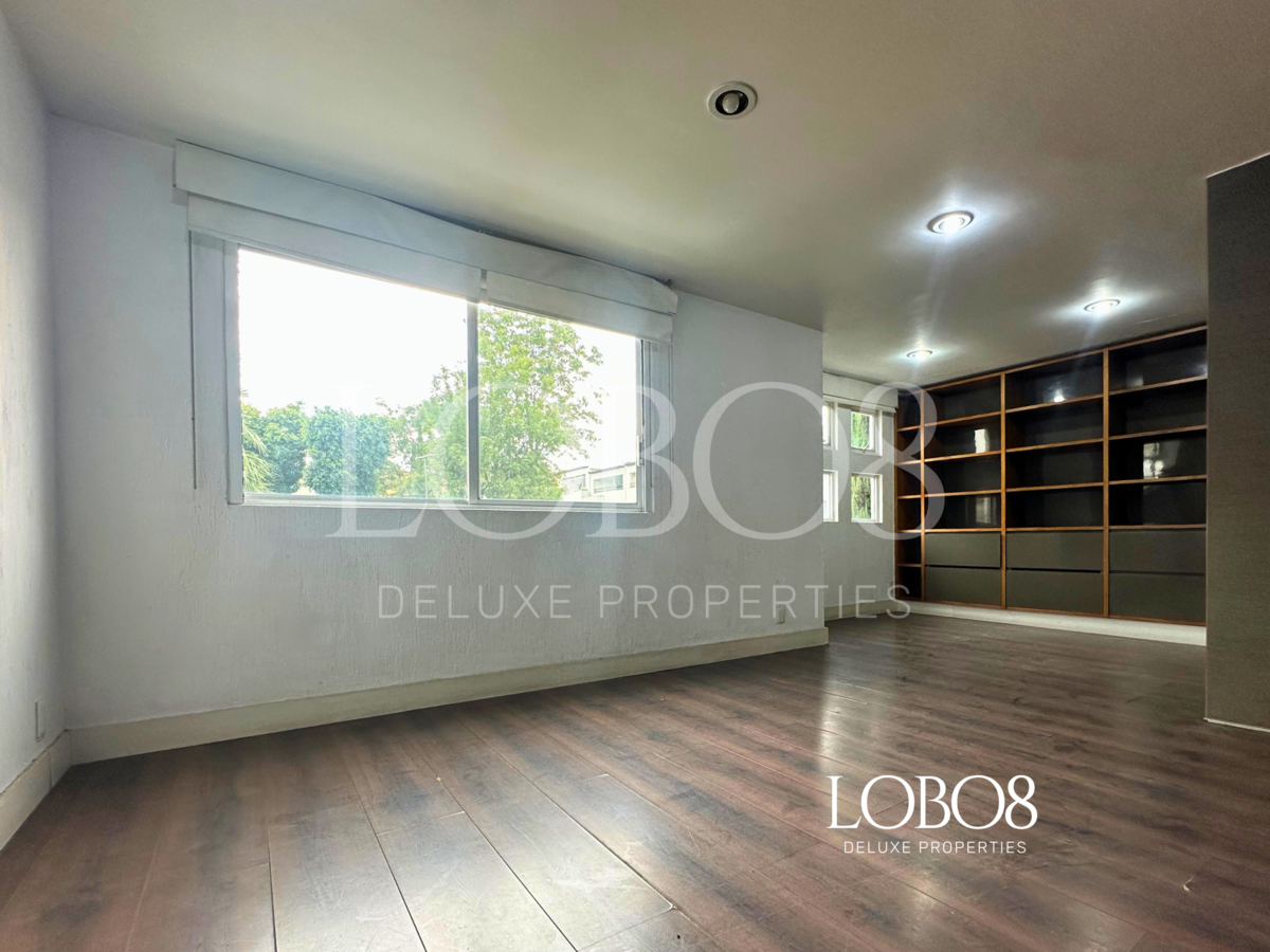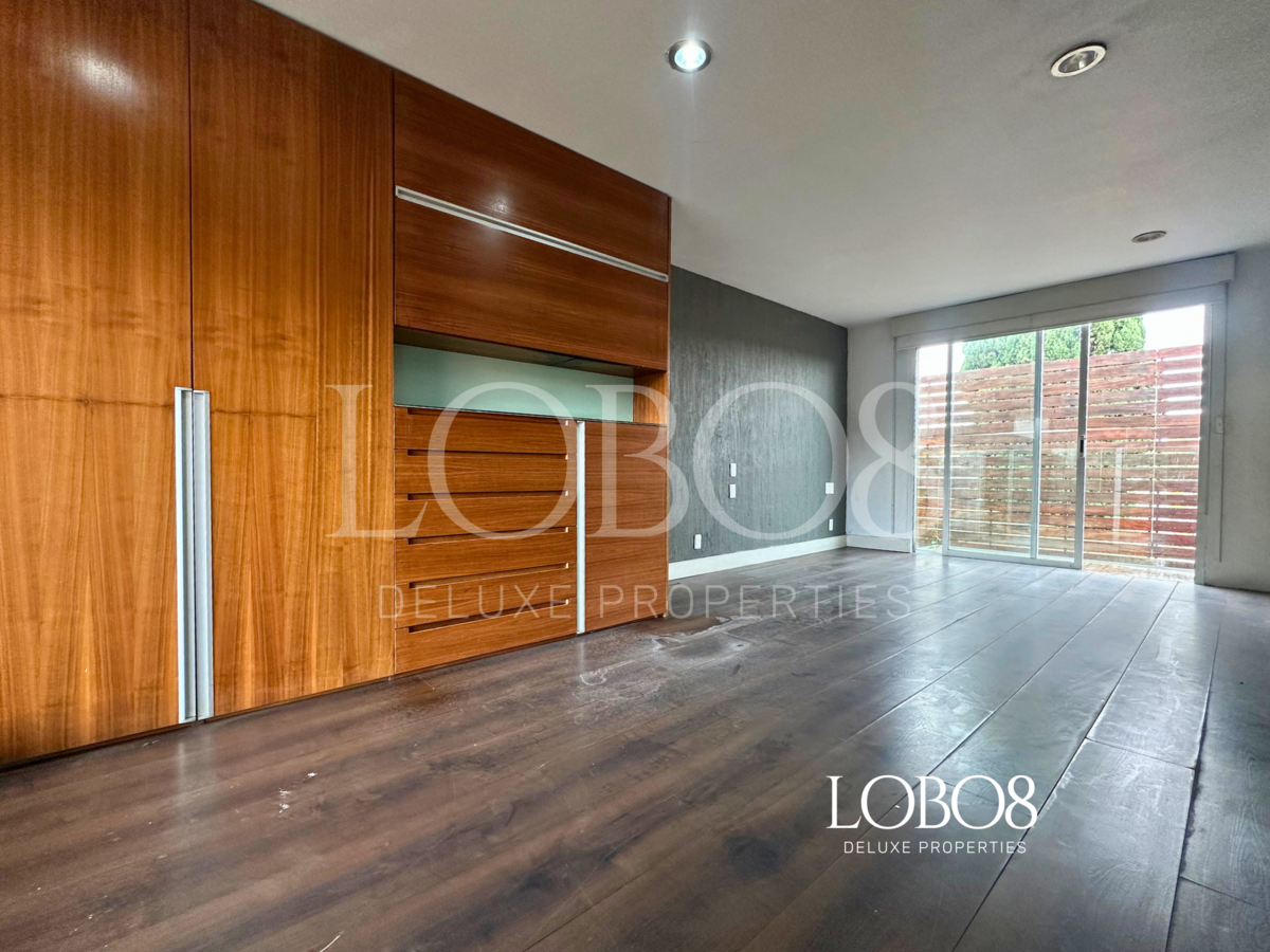 -Primer nivel: área de TV, estudio con librero, recámara secundaria con clóset y baño, recámara adicional con balcón y baño completo.