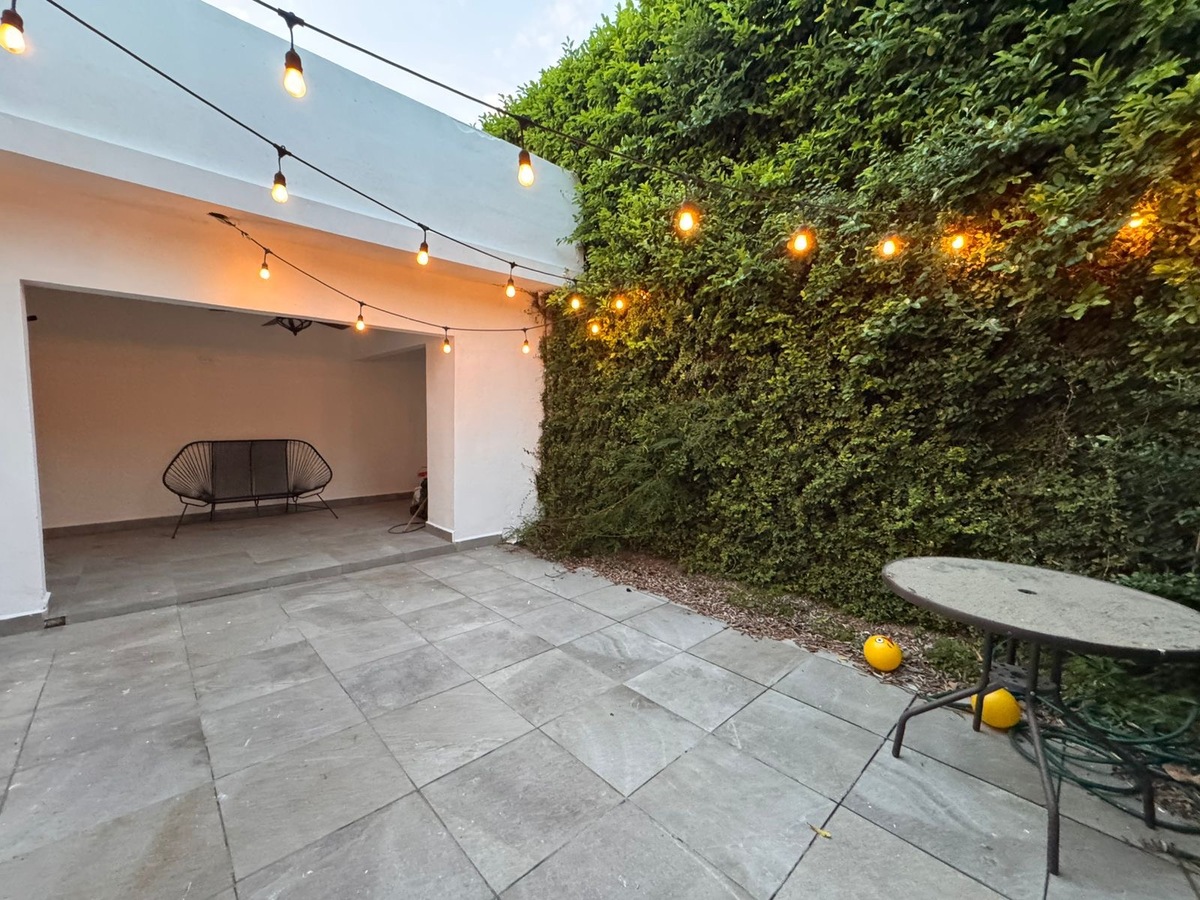 -Ground floor: covered garage for two vehicles, living room, dining room, and a half bathroom for guests, equipped kitchen, a spacious patio, newly equipped kitchen, and laundry room
