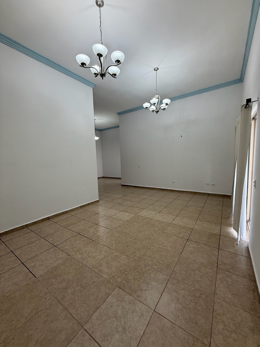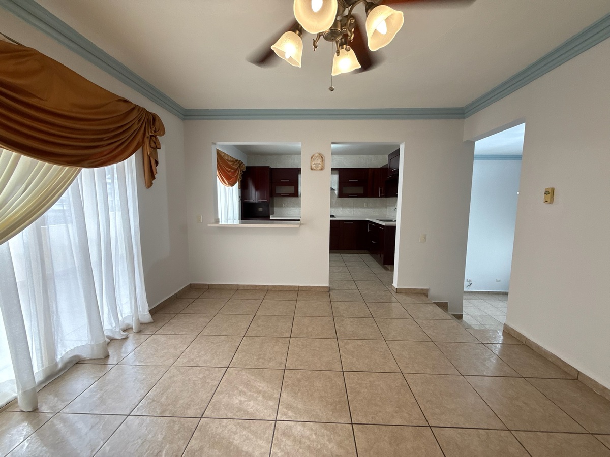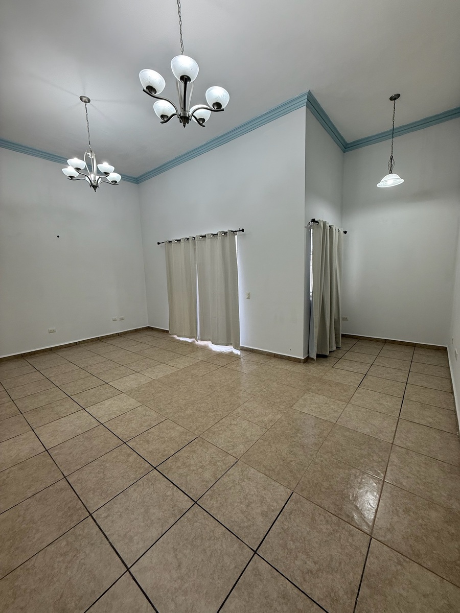 Primer piso: amplia sala con doble altura, comedor y cocina con espacio adicional para un comedor o sala familiar.
